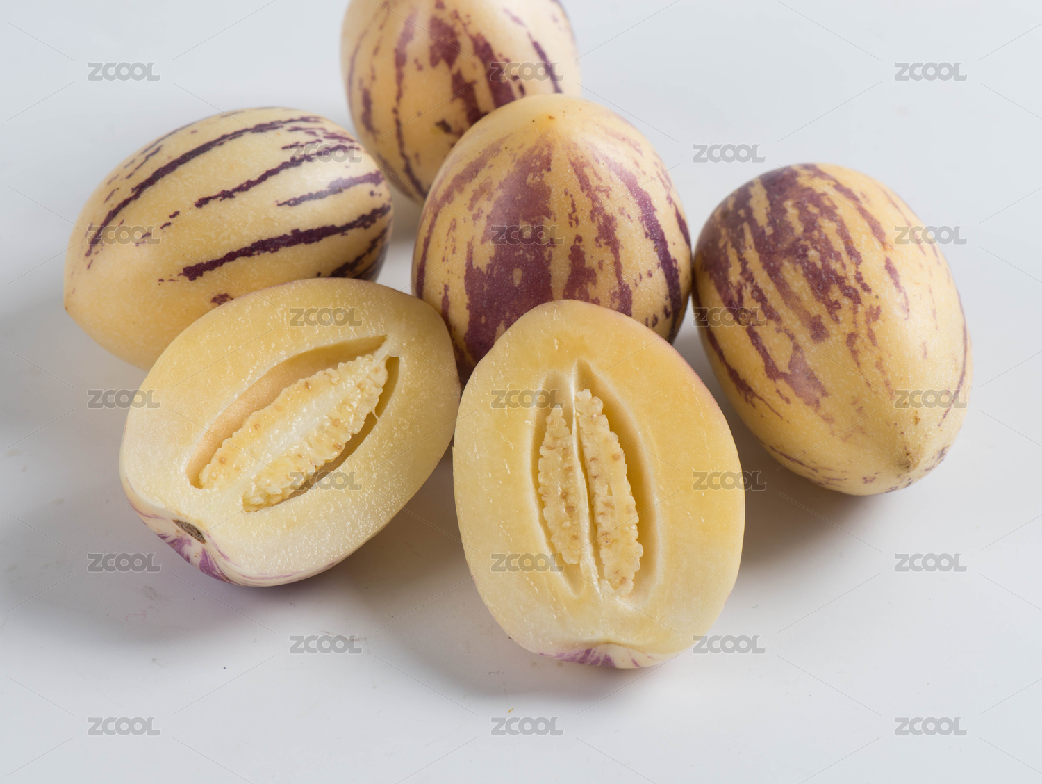 白底上的黄心人参果果肉