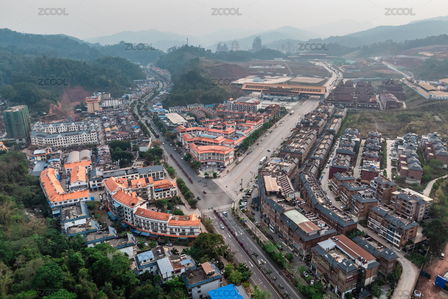 西双版纳勐腊县磨憨镇中缅口岸城市风光航拍