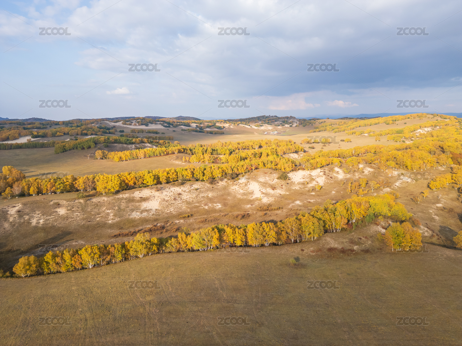 乌兰布统,坝上,秋天,秋季,季节,草原,桦树,树木,牧场,金黄