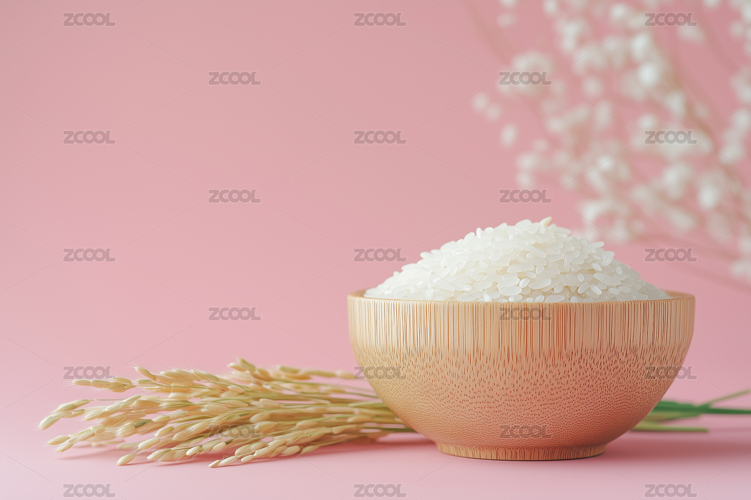 桌面上一碗大米和稻谷水稻背景,世界粮食日
