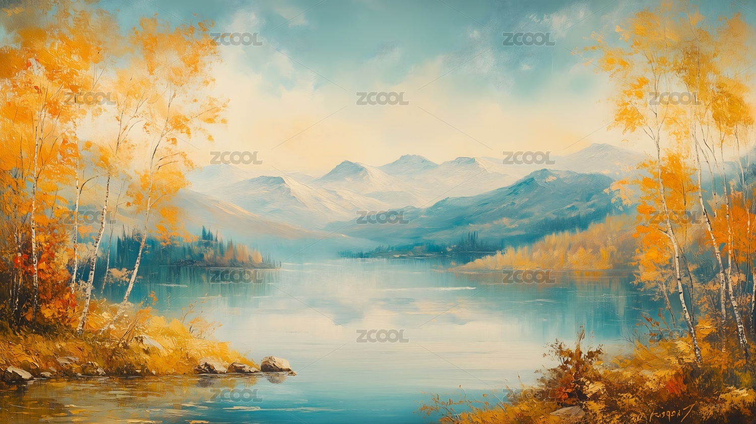 秋日湖畔山景