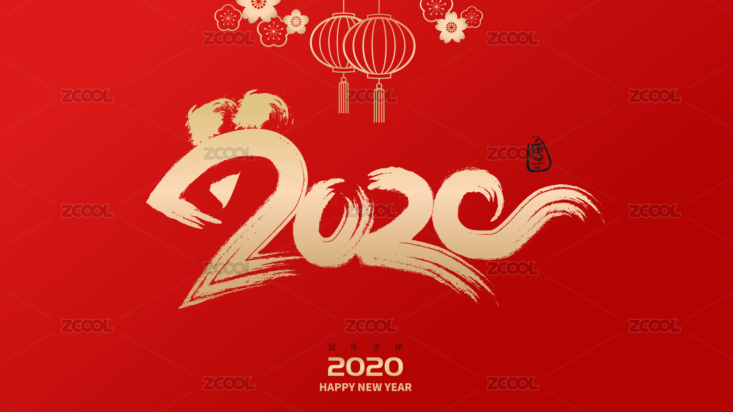 2020年新年鼠年手写书法字,春节中国传统文化海报插画背景