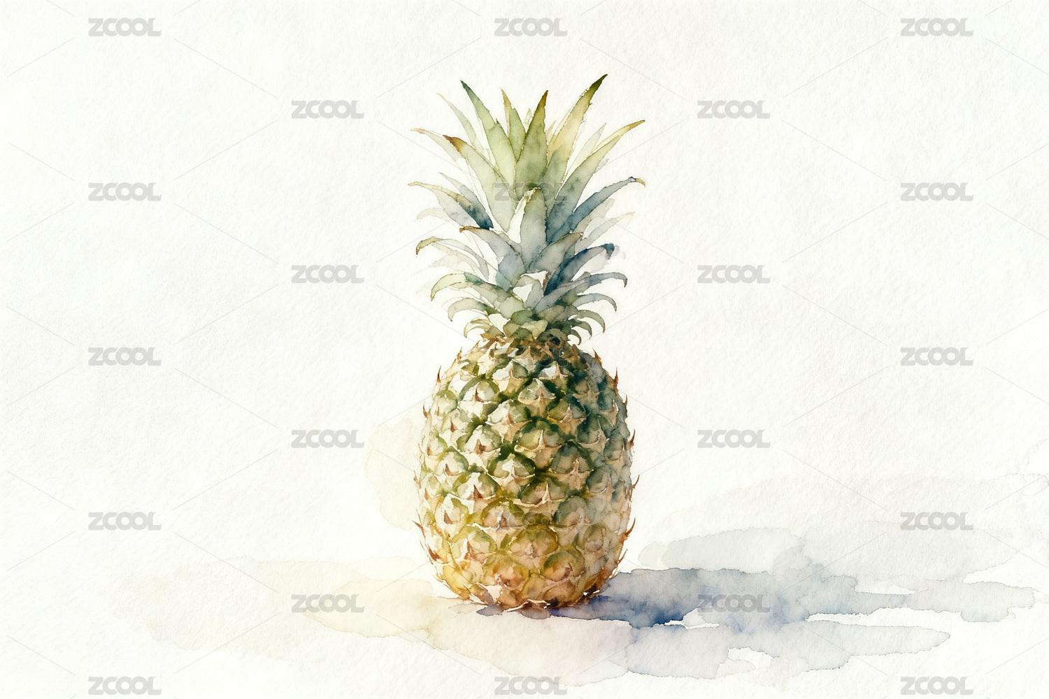 水彩手绘风格清新水果菠萝艺术插画