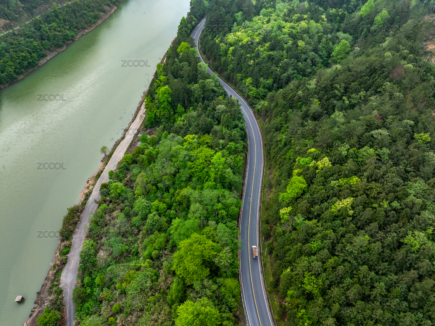 浙江杭州淳安县千岛湖公路自然风光航拍