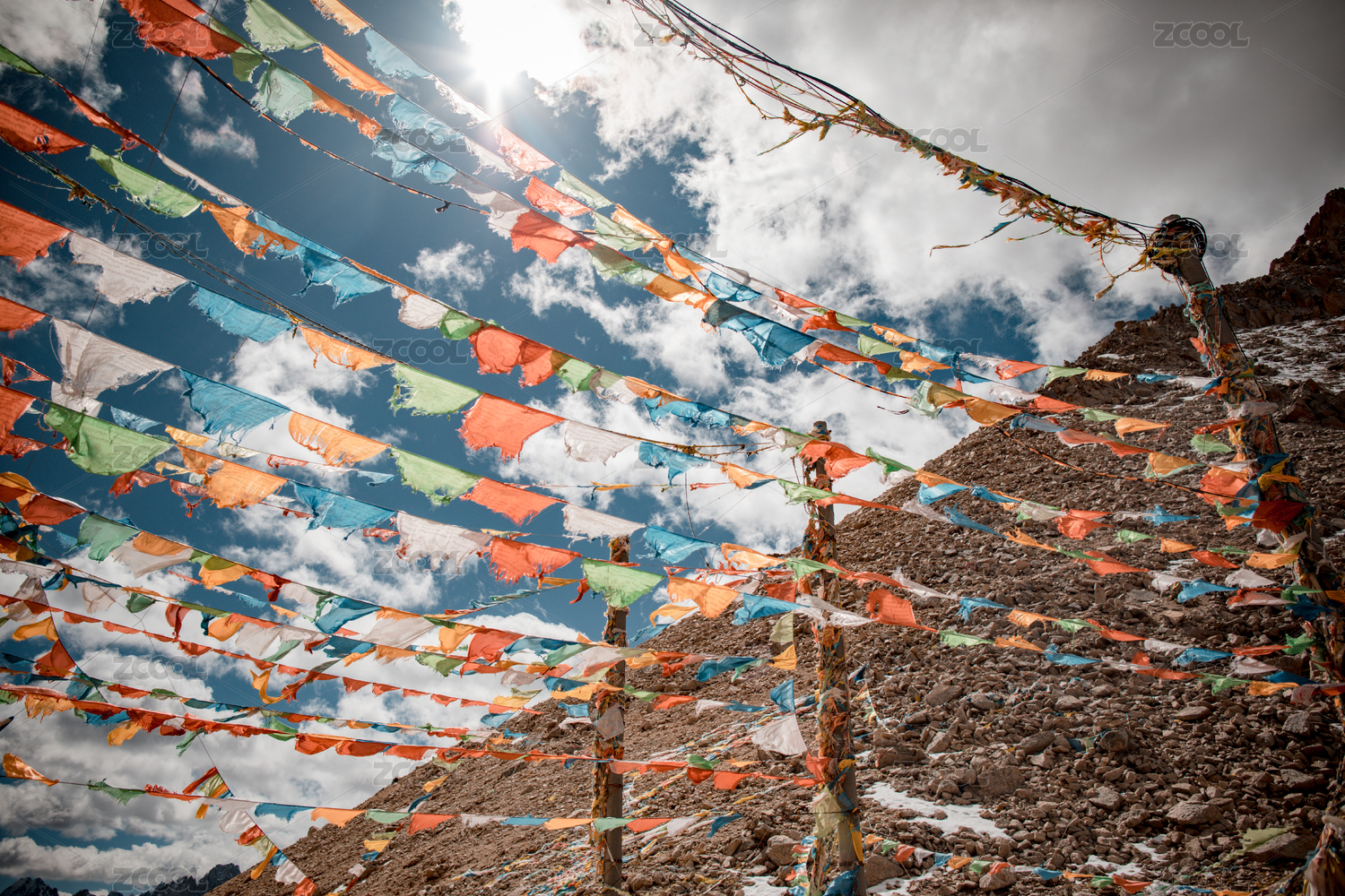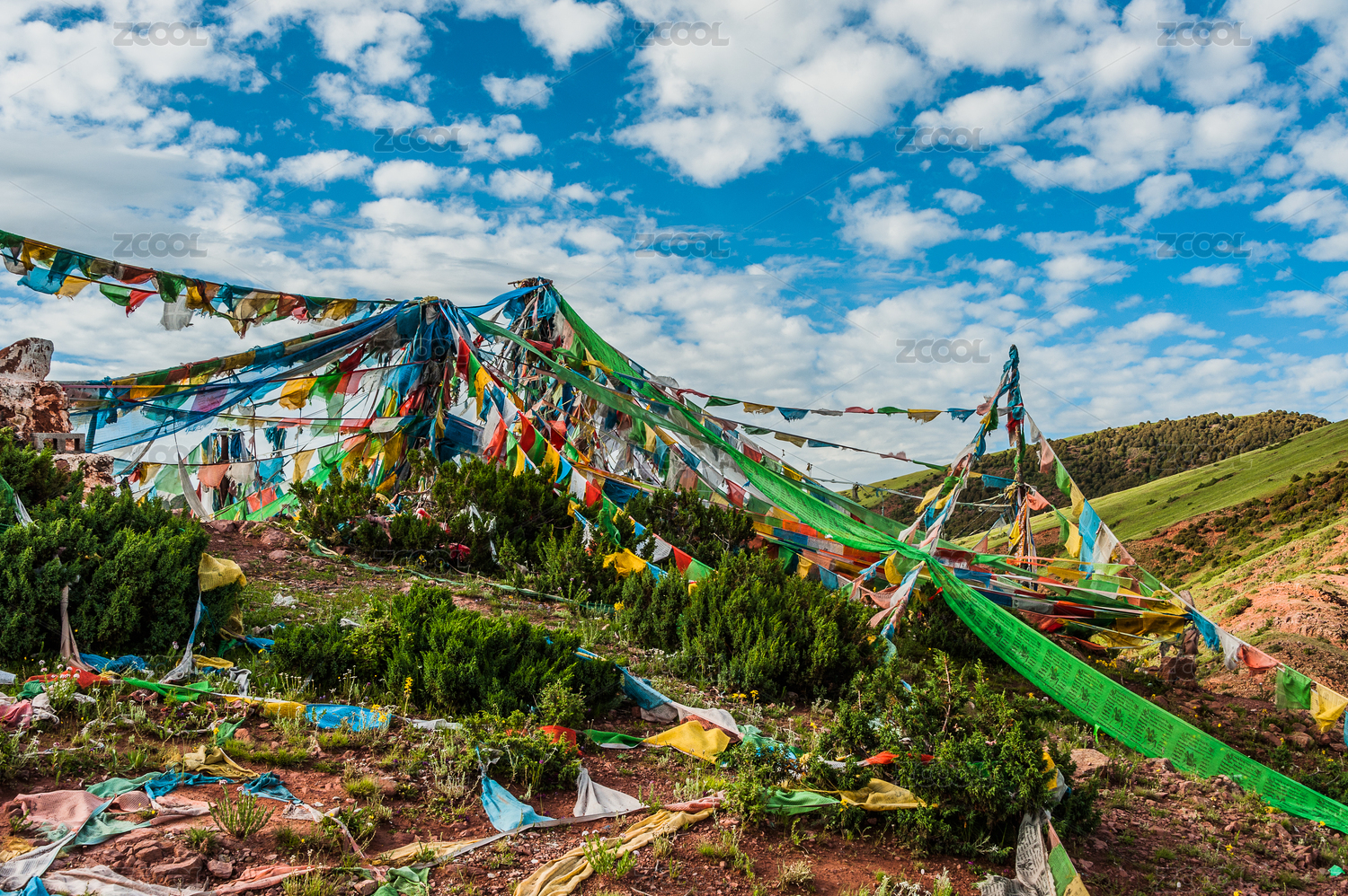 挂,天空,风景,冬季,俯视,经幡,经幡飘扬,经幡塔,蓝天白云,旅游