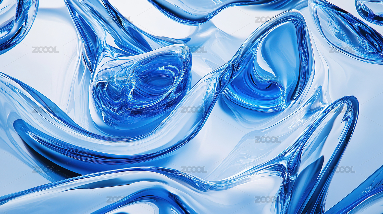 蓝色玻璃水质感流动发光背景