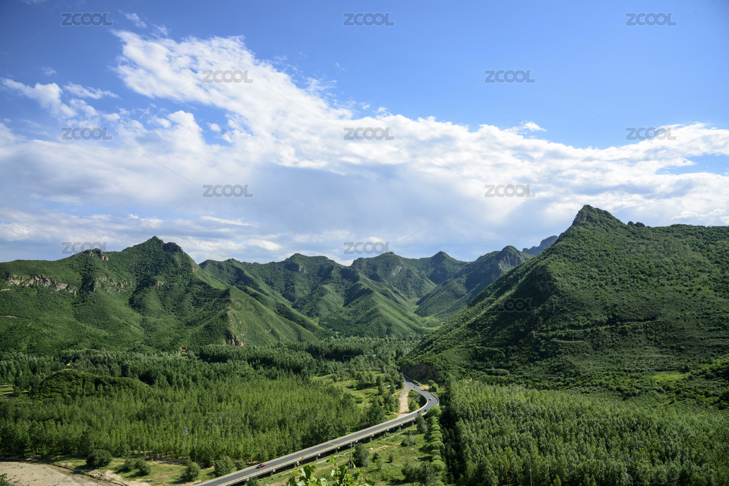 山区里晴朗的天空里飘来一片白云,北京延庆郊区