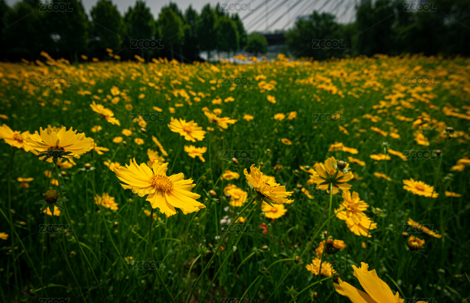 湖北武汉光谷西苑公园硫磺菊花海风光