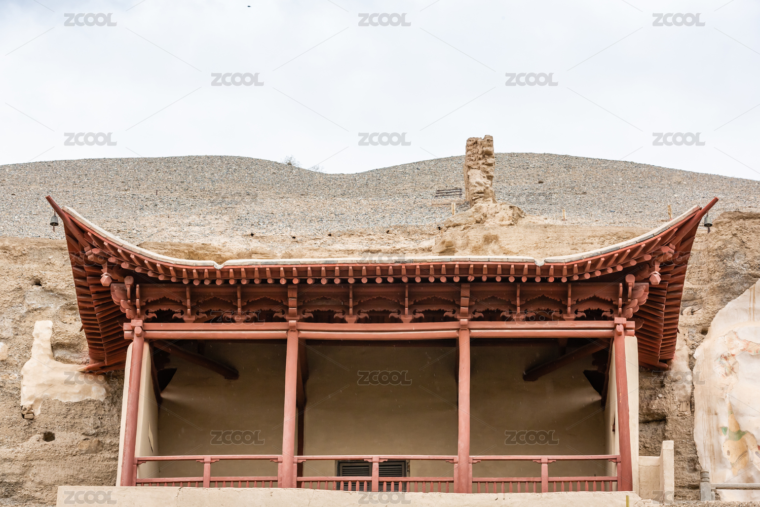 世界遗产著名历史古迹敦煌莫高窟建筑特写