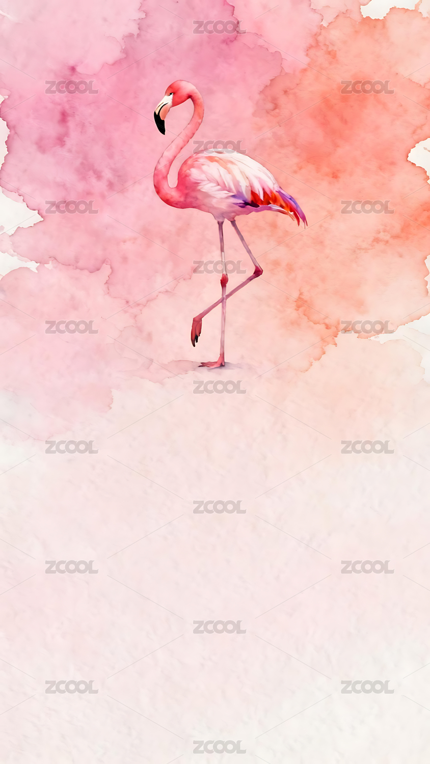 水彩粉红火烈鸟