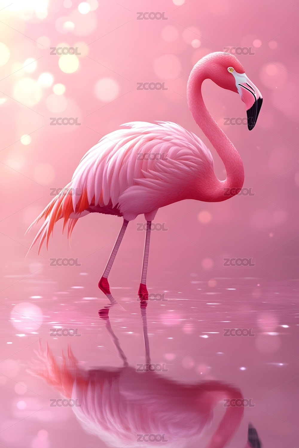 粉红火烈鸟水中伫立