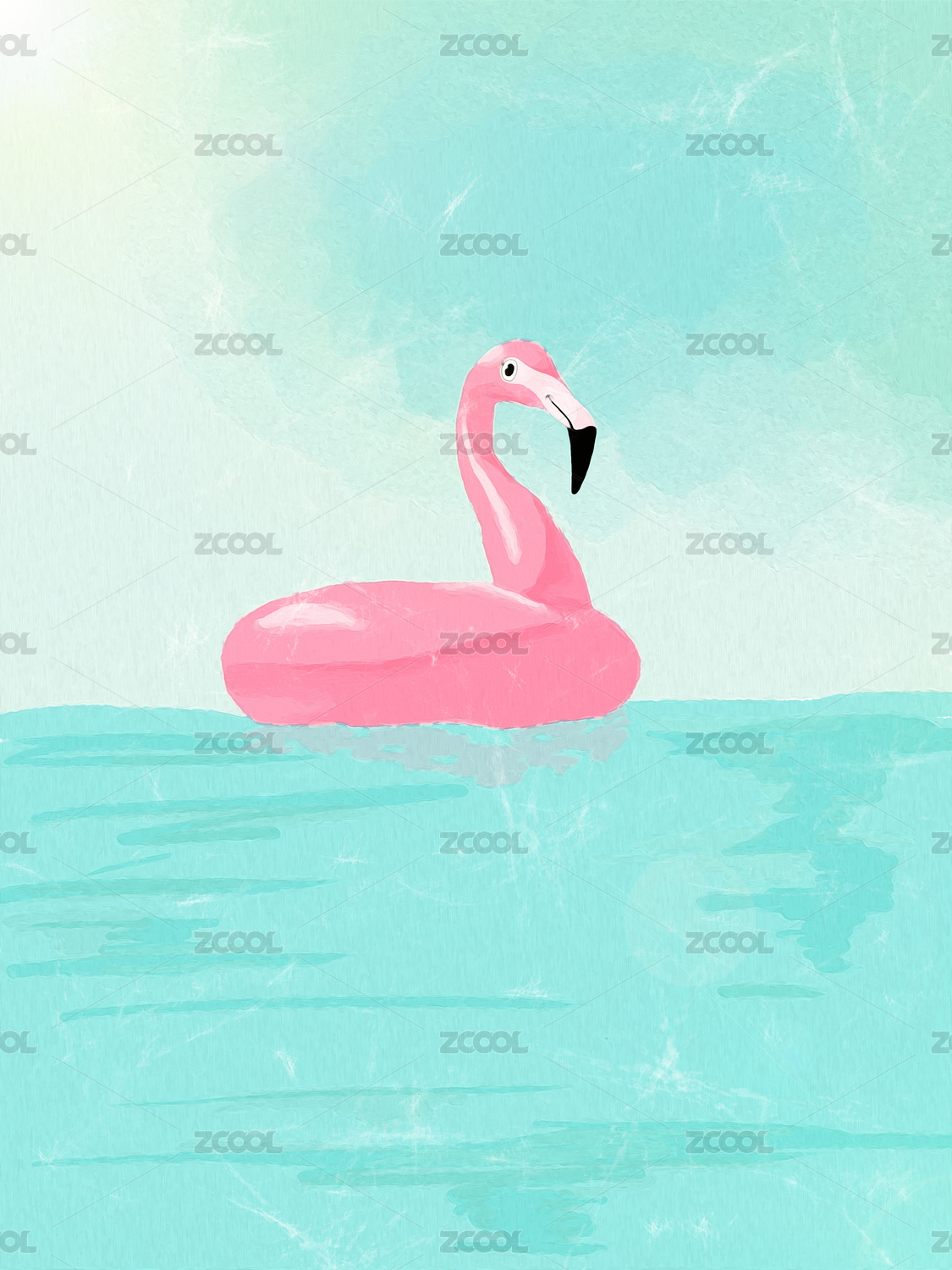 夏天海边火烈鸟游泳圈壁纸