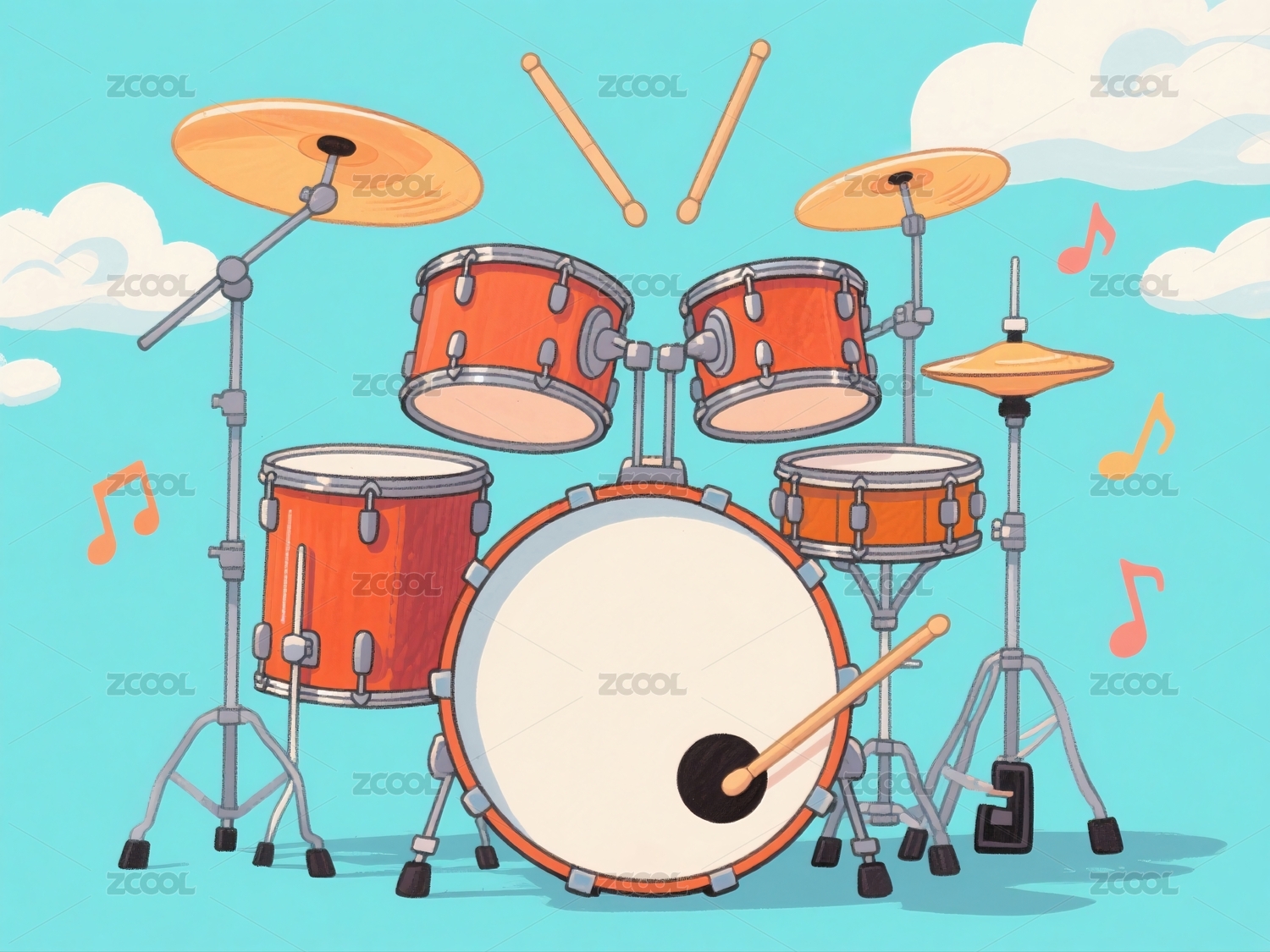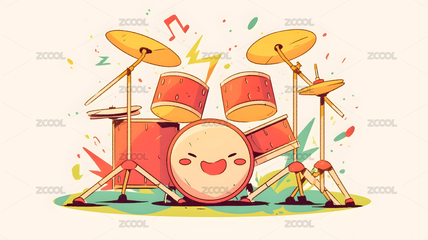 卡通风格架子鼓乐器演奏
