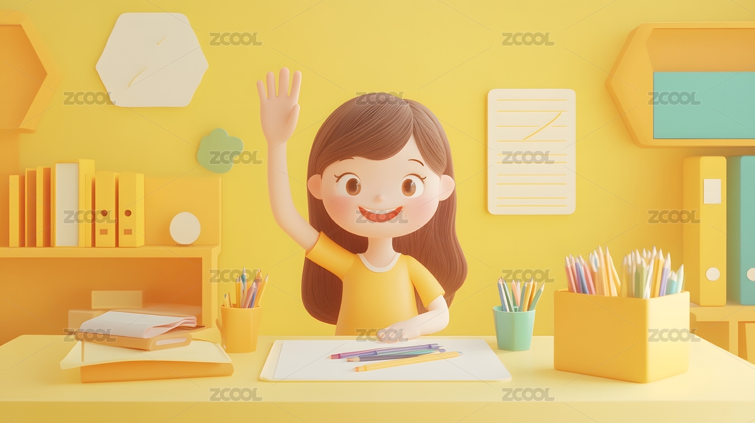 女孩,学生,学习,举手,回答,问题,提问,上课,小学生,小学