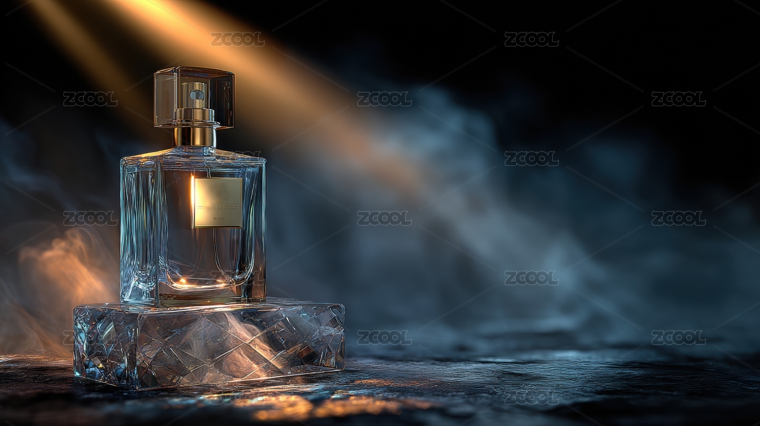 香水瓶置于烟雾中光线照射