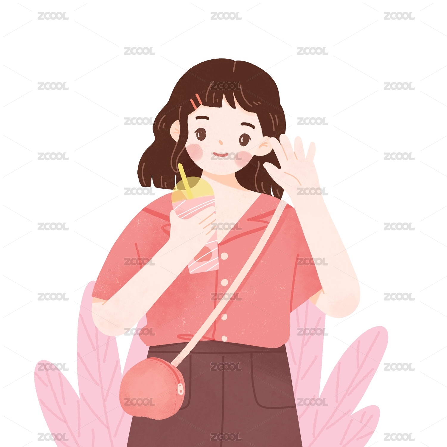 拿着奶茶果茶的女学生粉色可爱