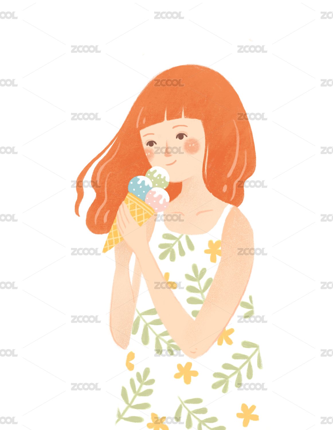 吃雪糕的女孩插画