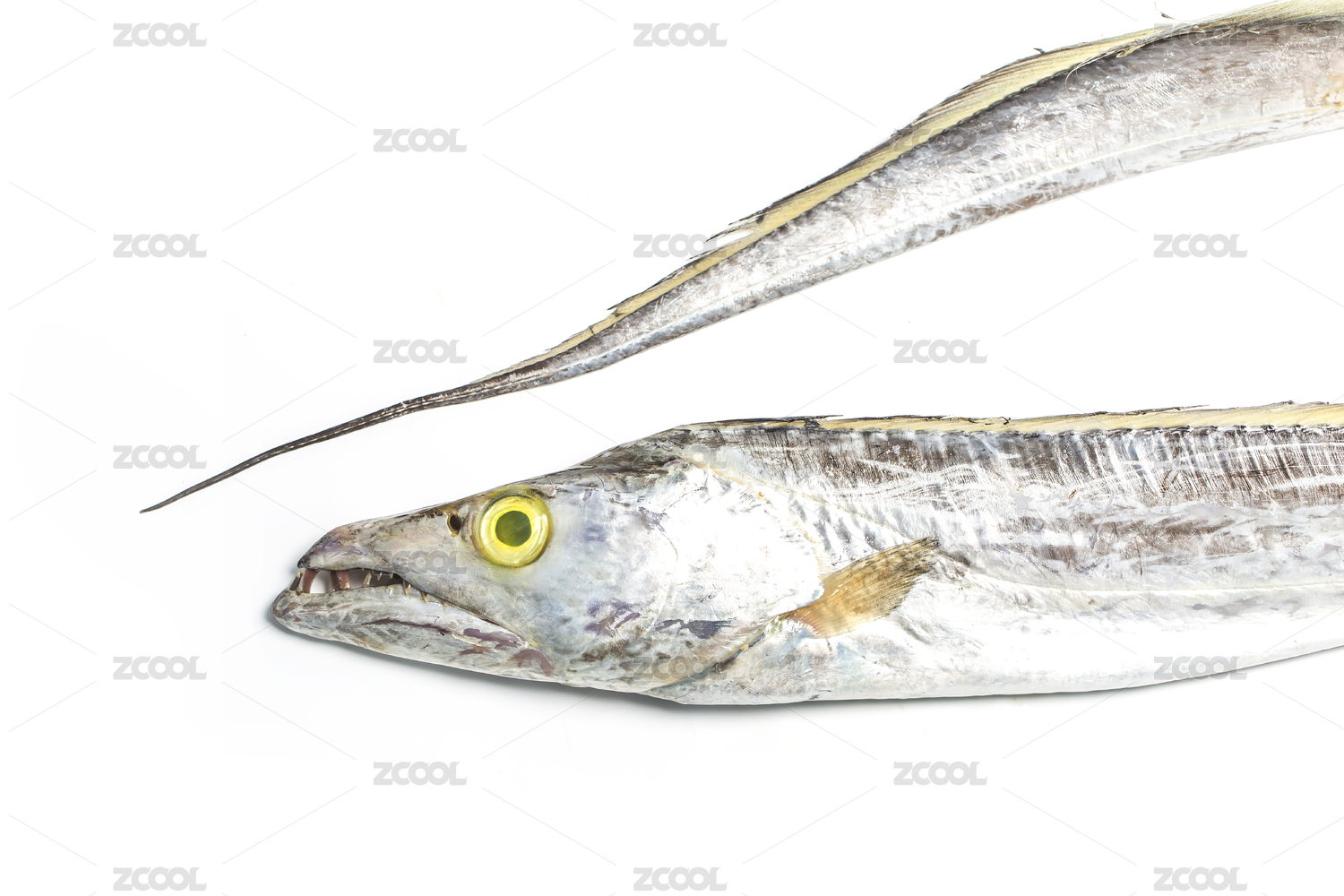 白色背景上新鲜海产带鱼