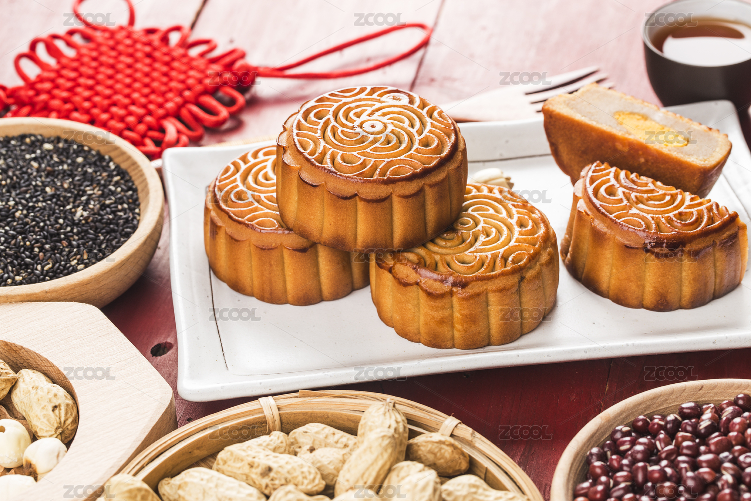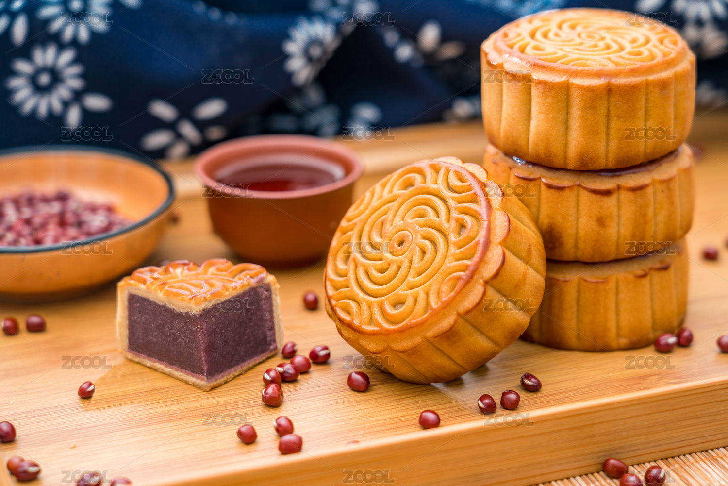 放在托盘里的中国中秋节美食红豆月饼