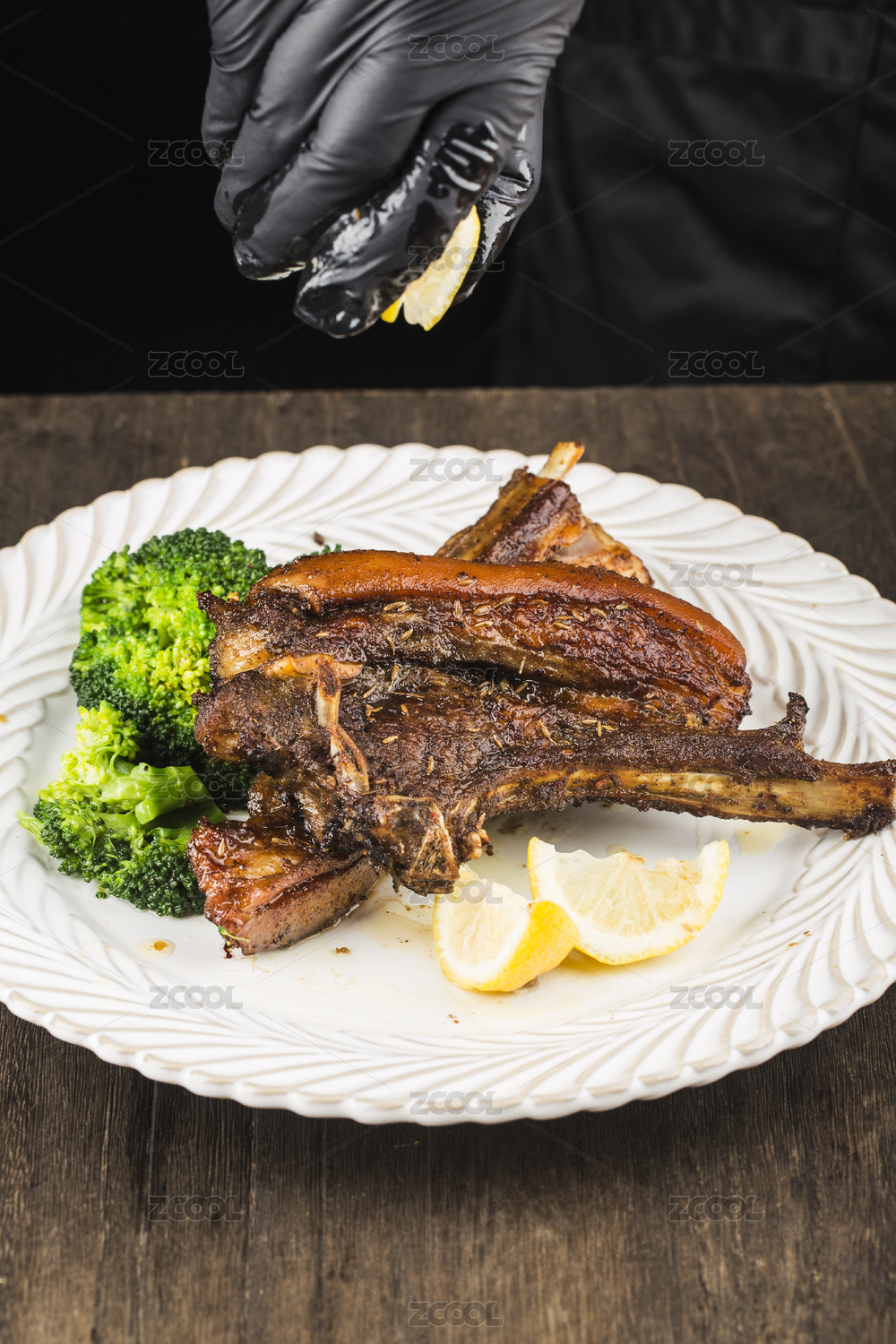 蔬菜,肉,西兰花,主菜,盘子,室内,羊排,羊肉,烤羊排,孜然