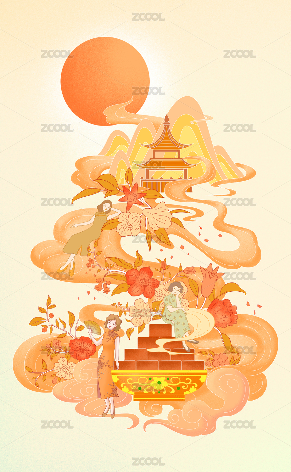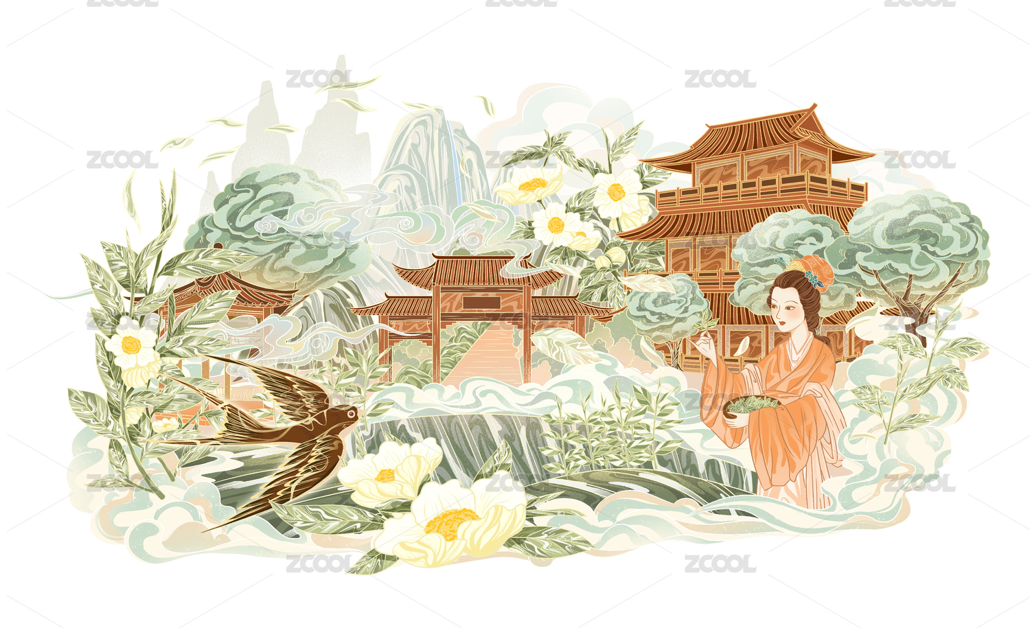 端午,插画,国风,国潮,节日,龙,龙舟,粽子,建筑