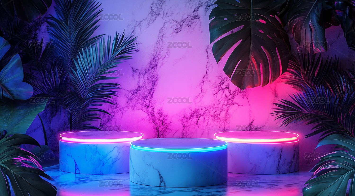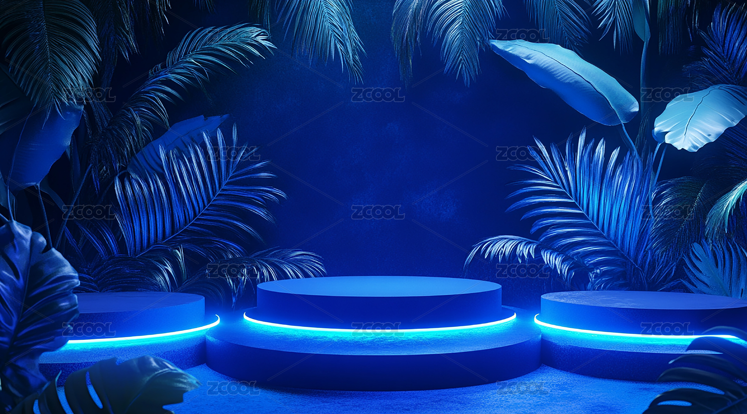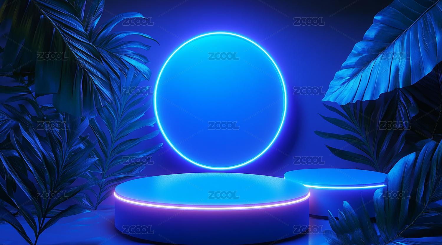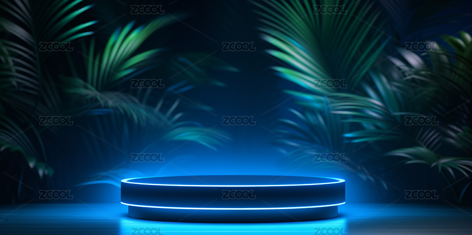 蓝色,灯光,照射,植物,展台,平台,几何,场景,展示