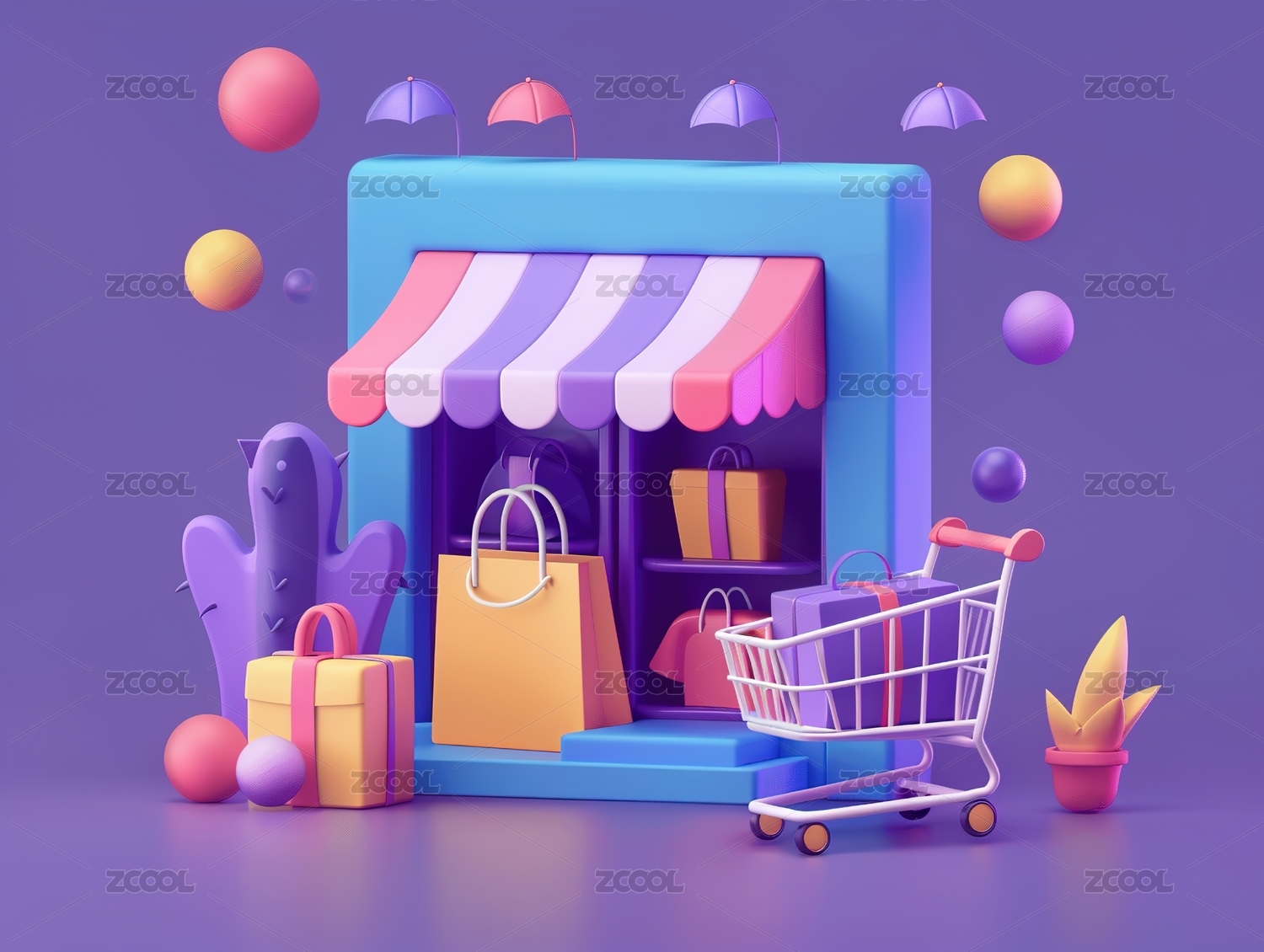 3D,电商,小屋,屋子,立体,店铺,小店,房屋