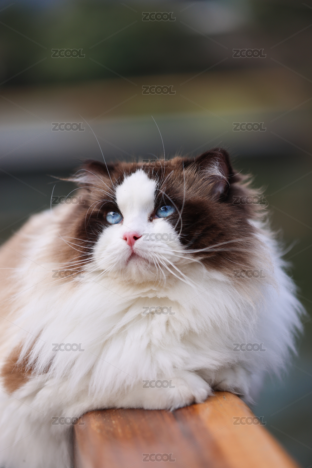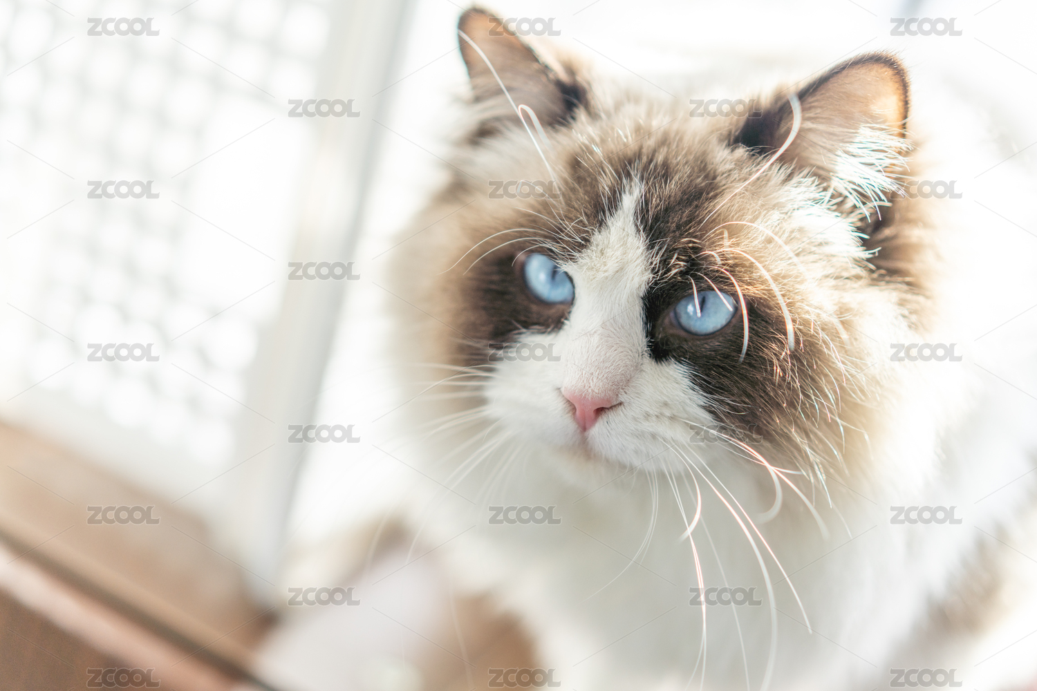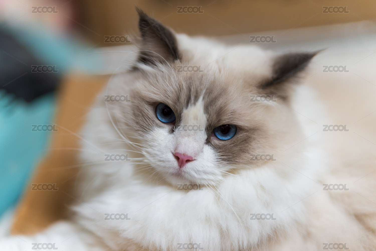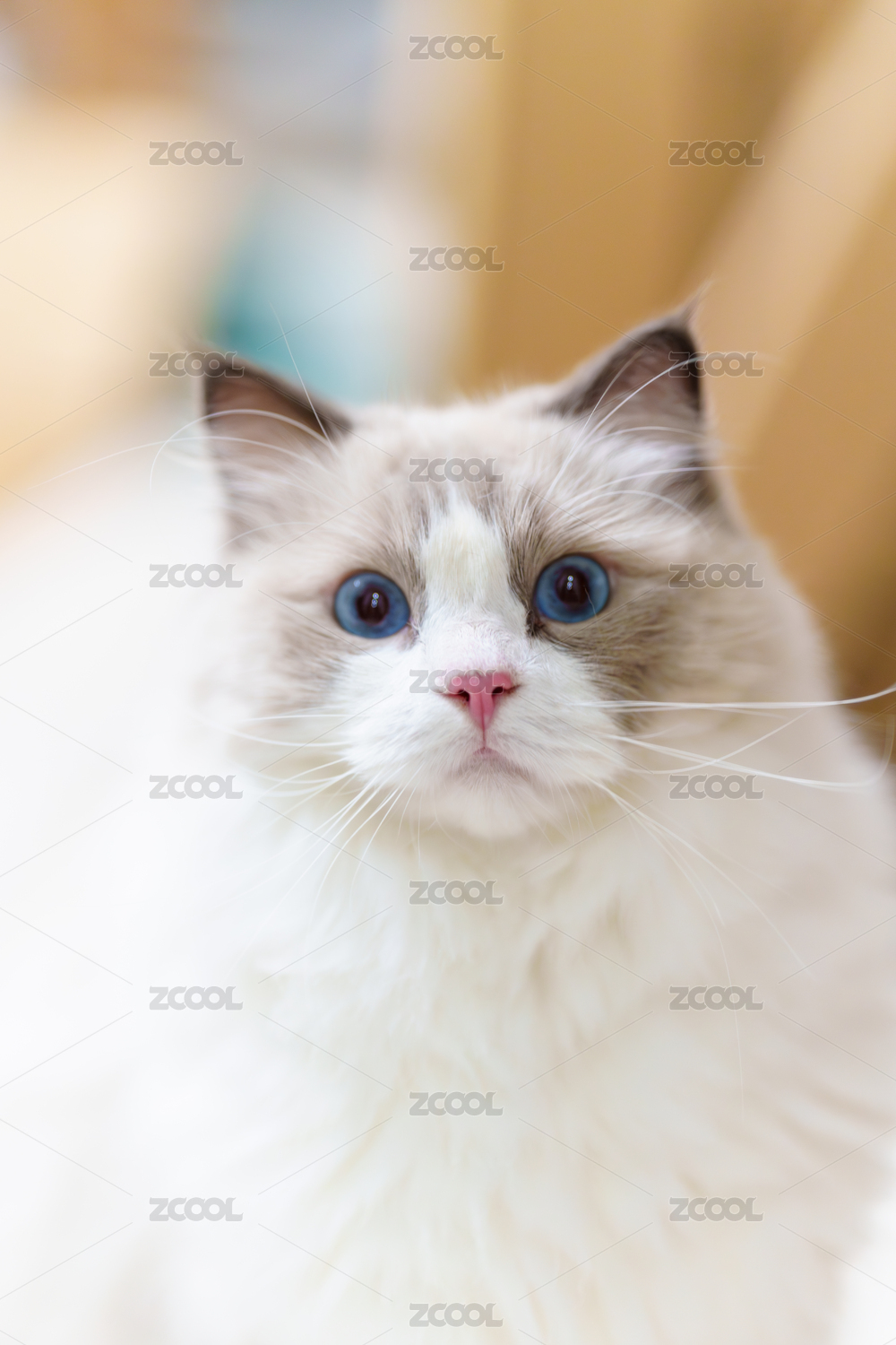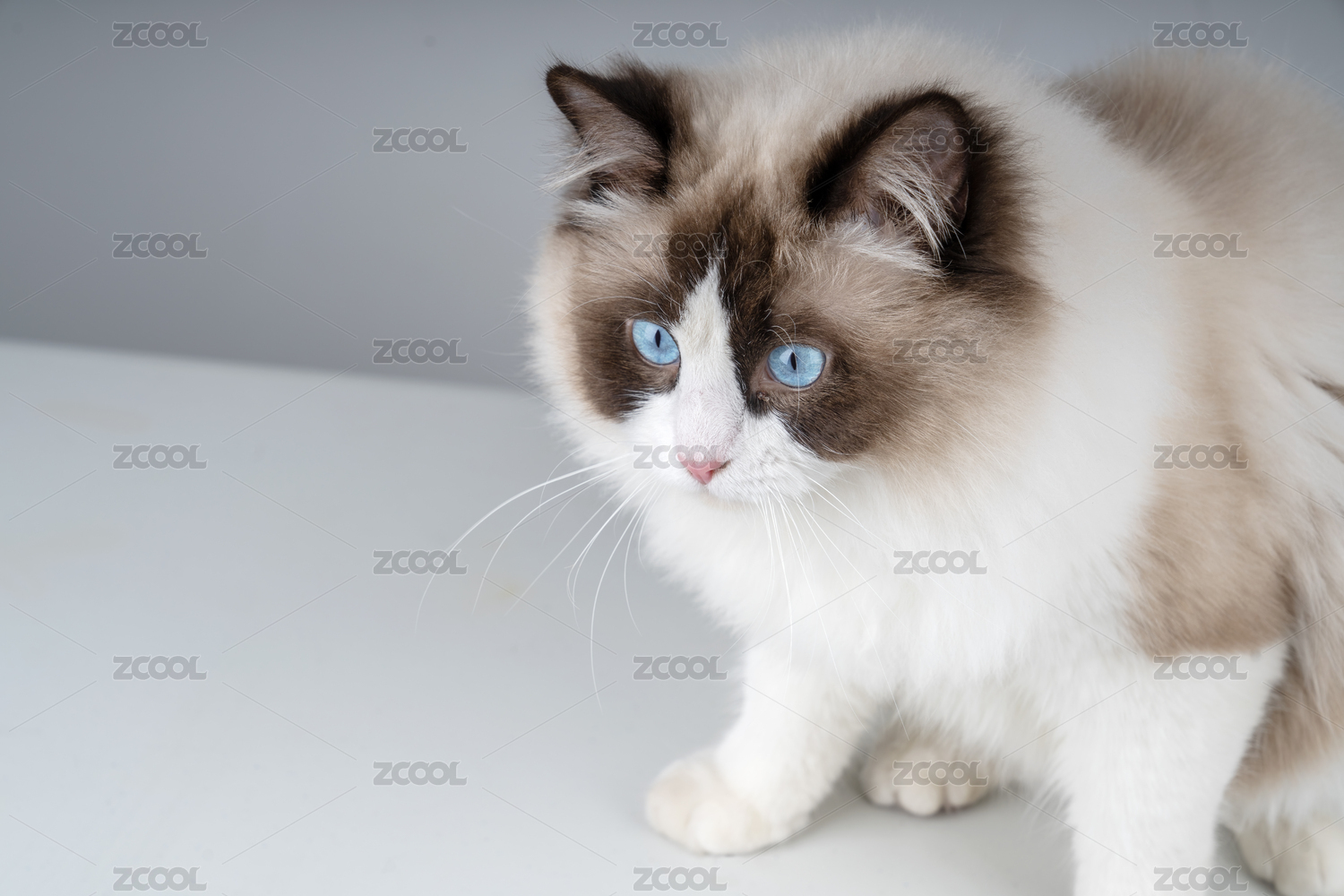 布偶猫肖像蓬松长毛蓝眼灰白摄影