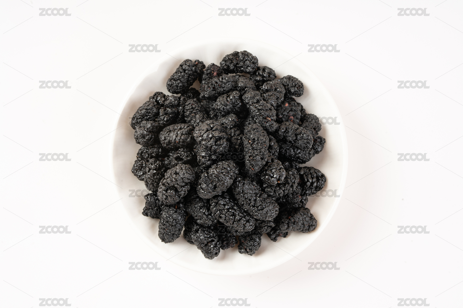 白底背景上一碟五谷杂粮桑椹