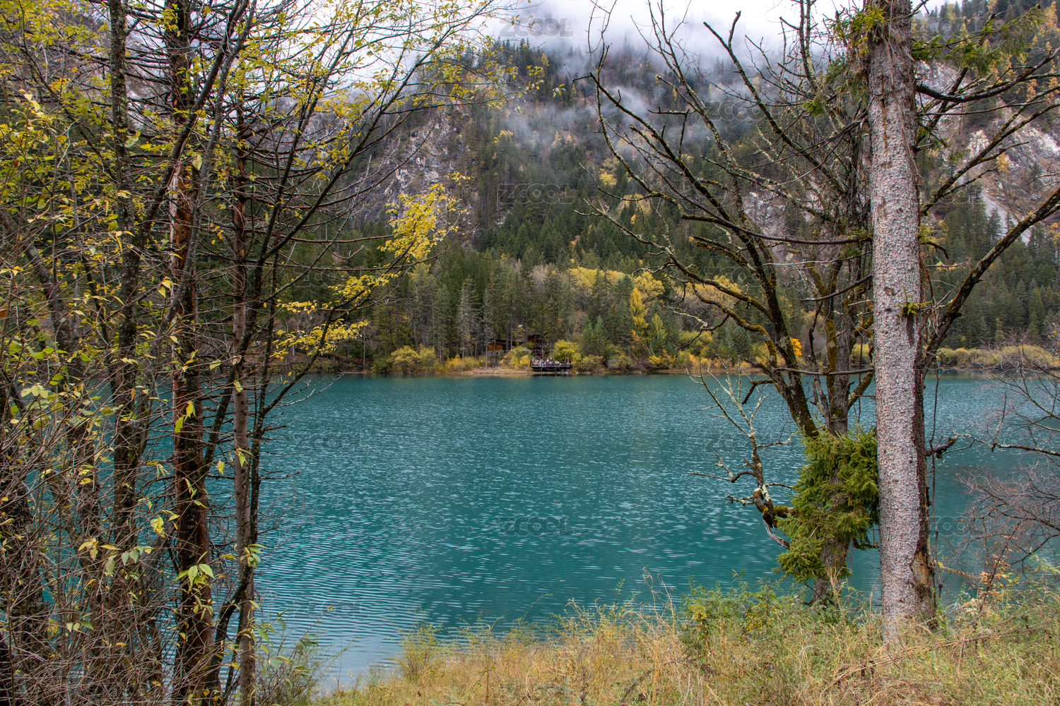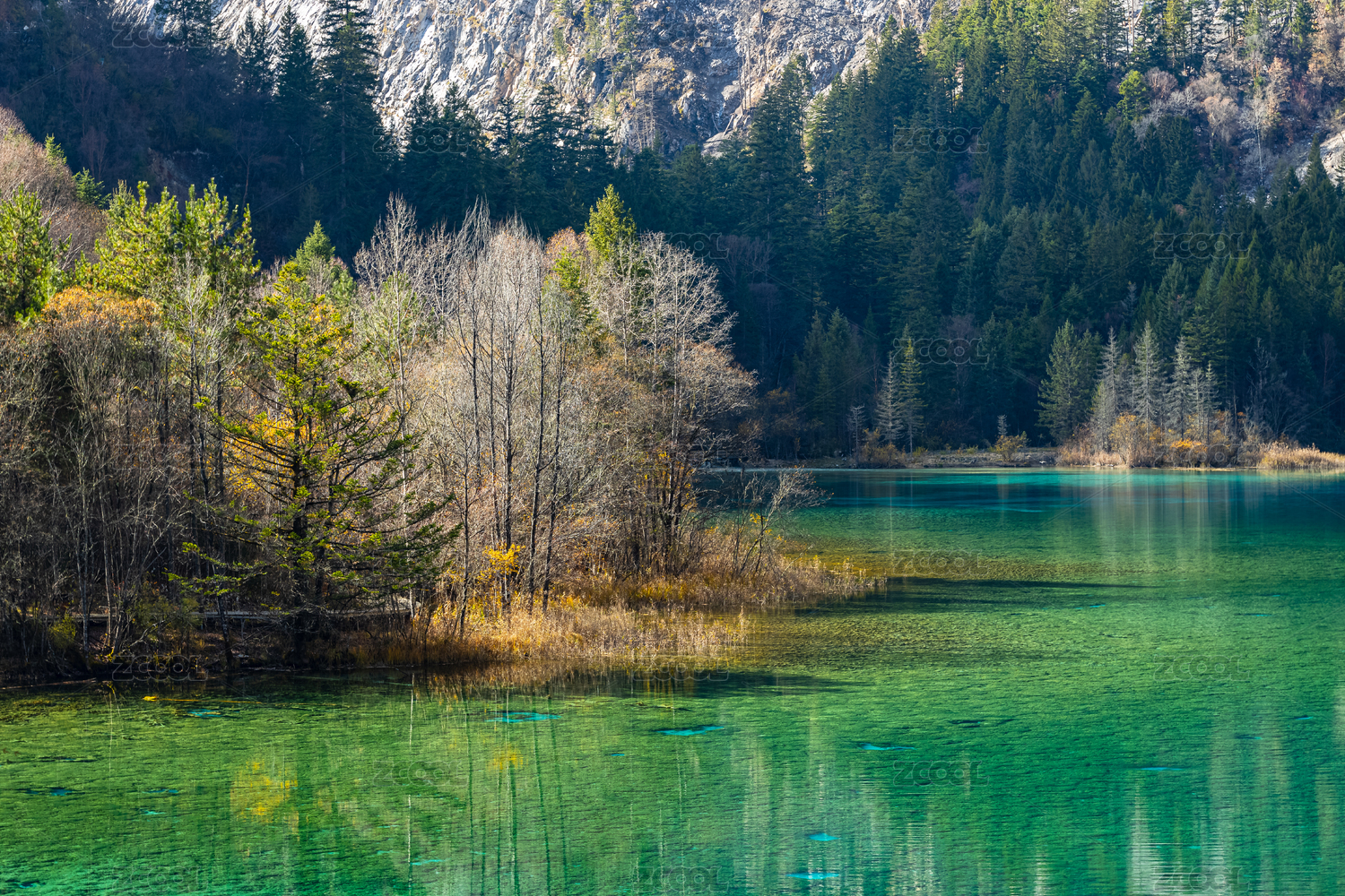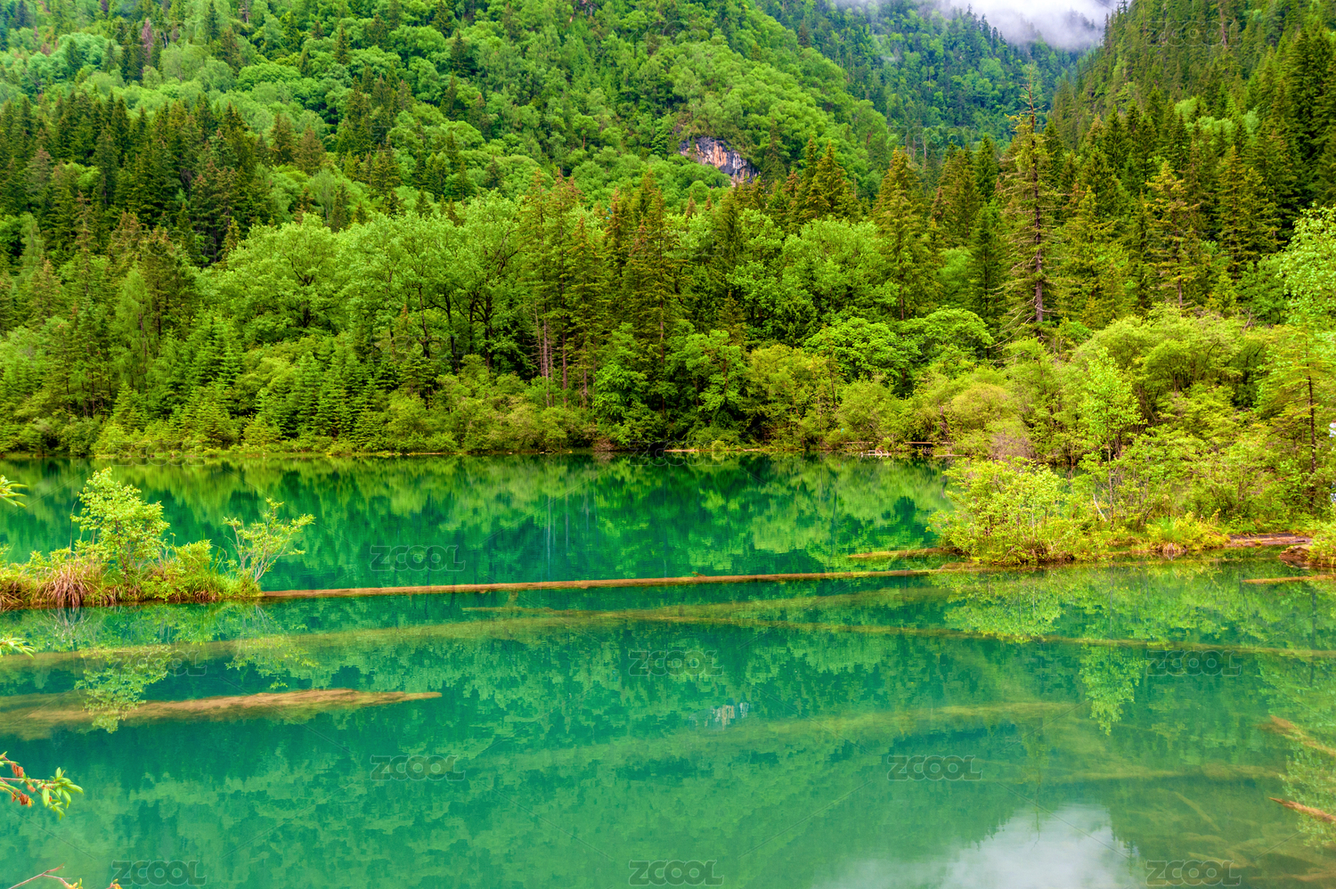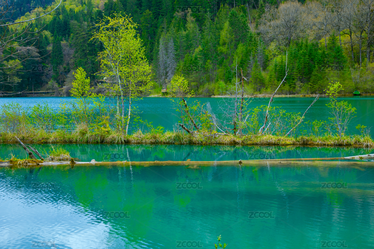 四川省阿坝州九寨沟-湖面上的浮木景观