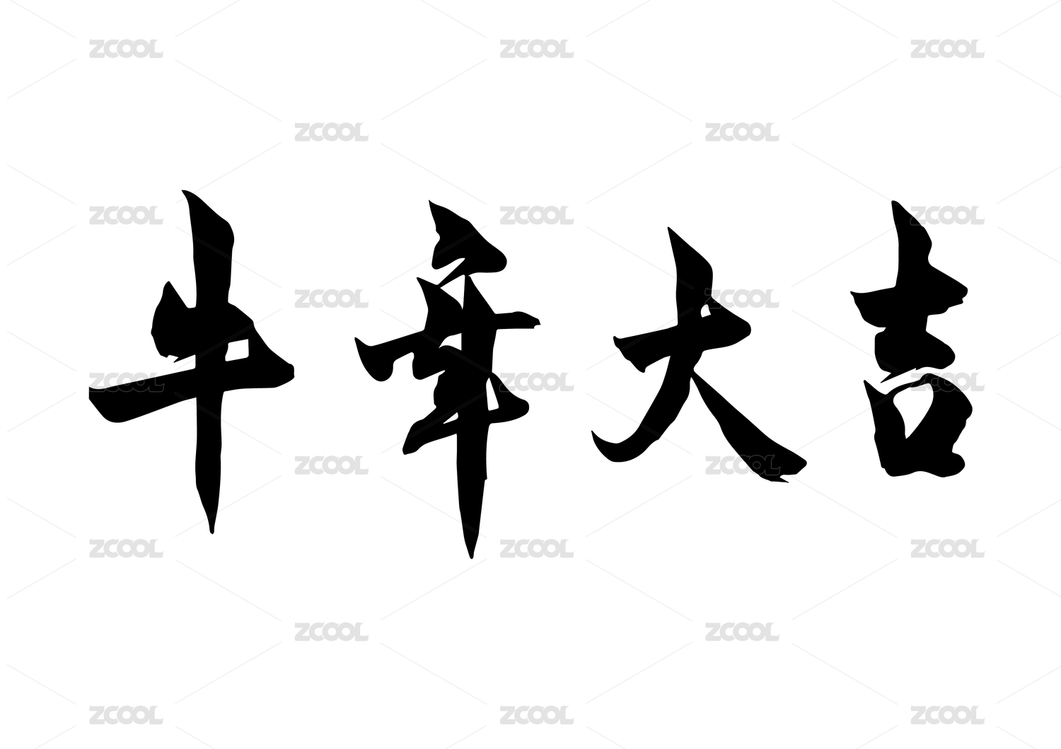 牛年大吉中国汉字手写毛笔字体