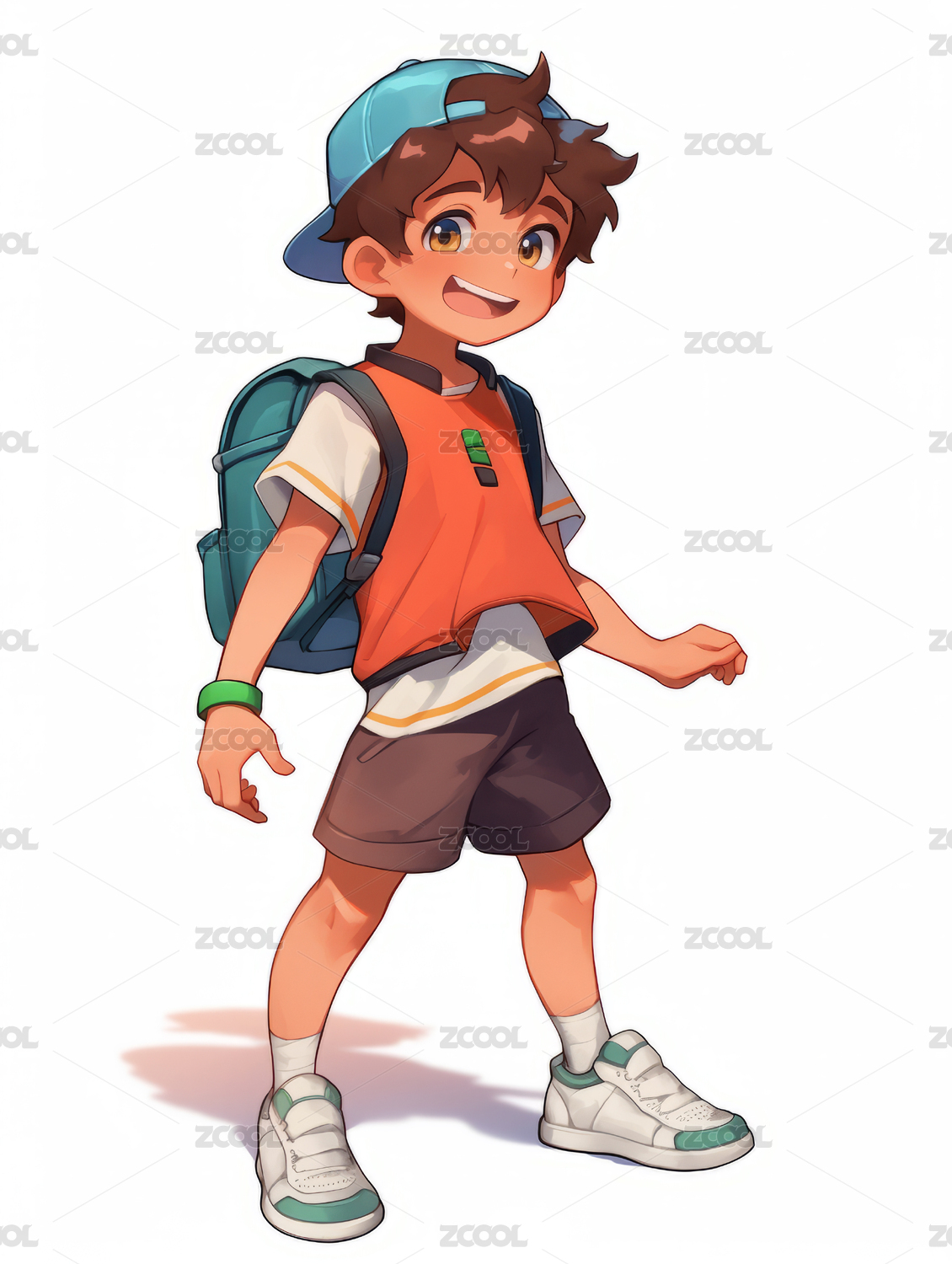 AIGC202402,卡通,三维,学生,书包,可爱,人物,男孩,男生,大学生