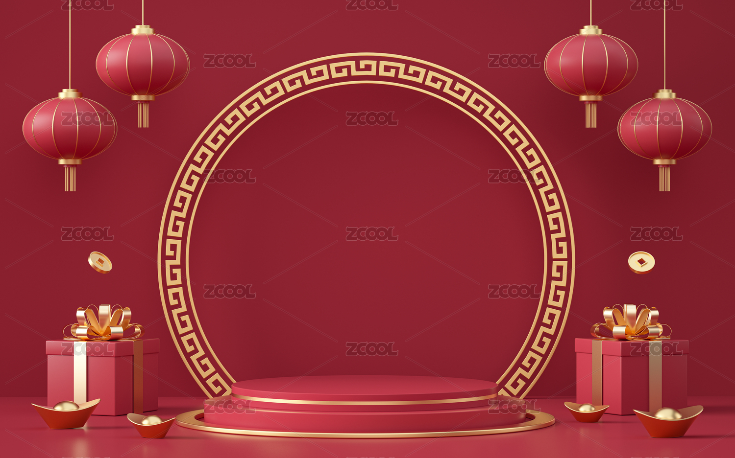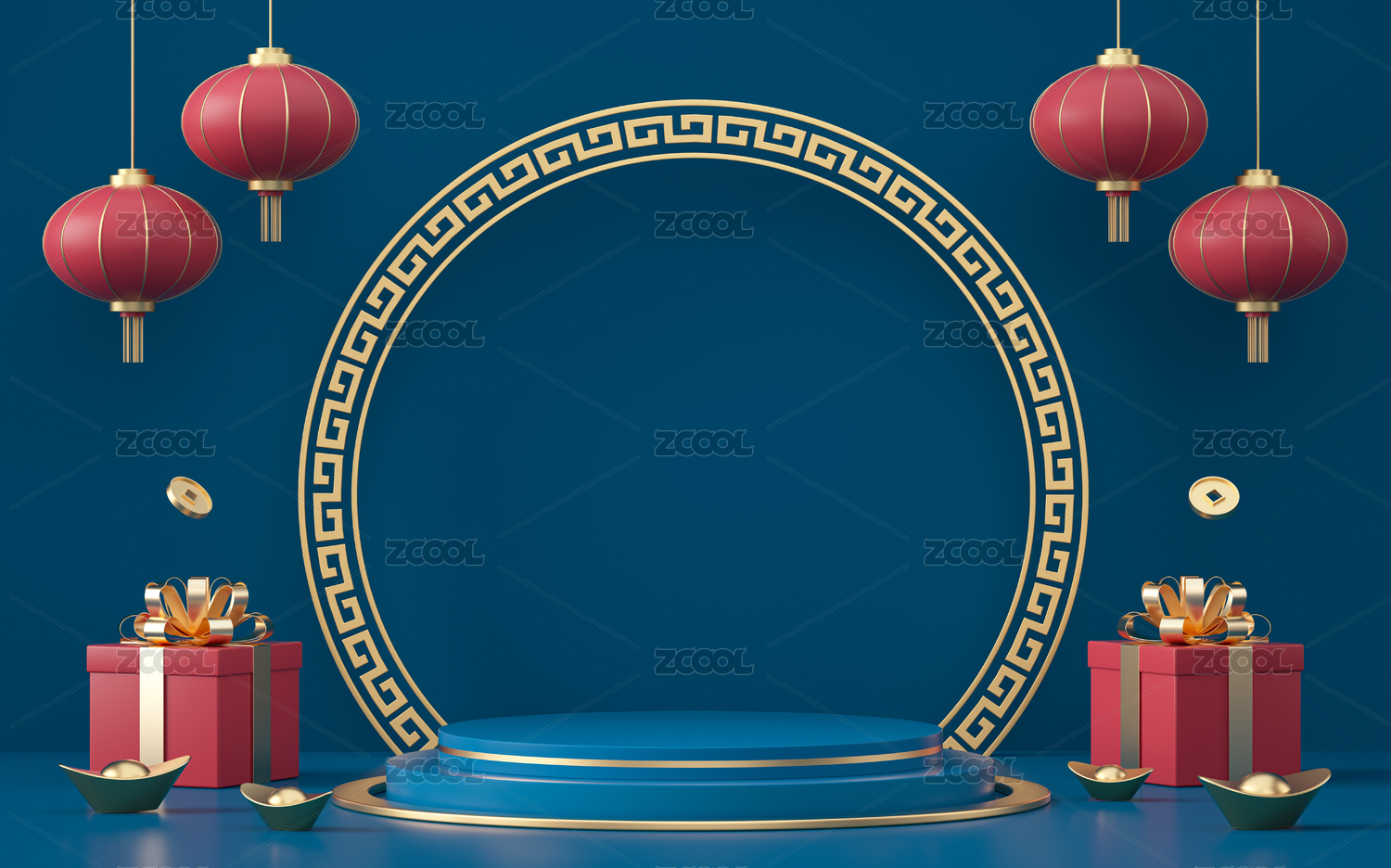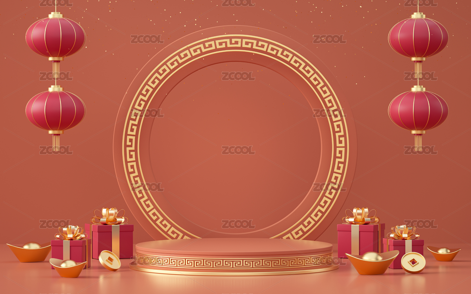 3d产品展台春节场景新年背景
