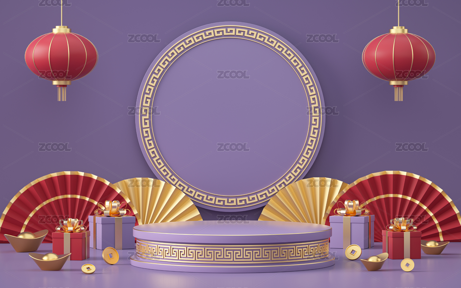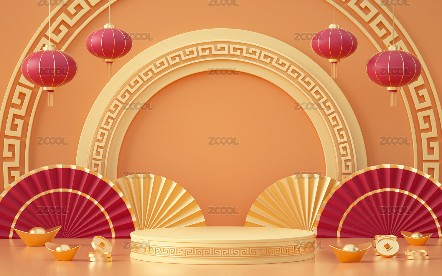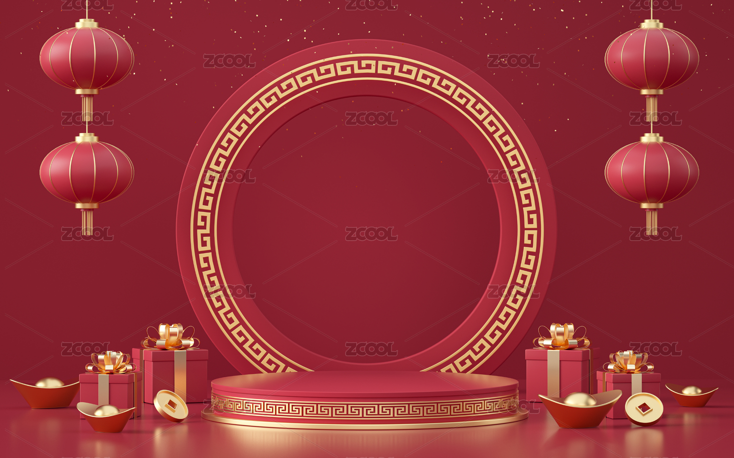 3d产品展台春节场景新年背景