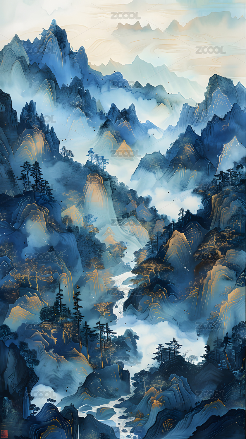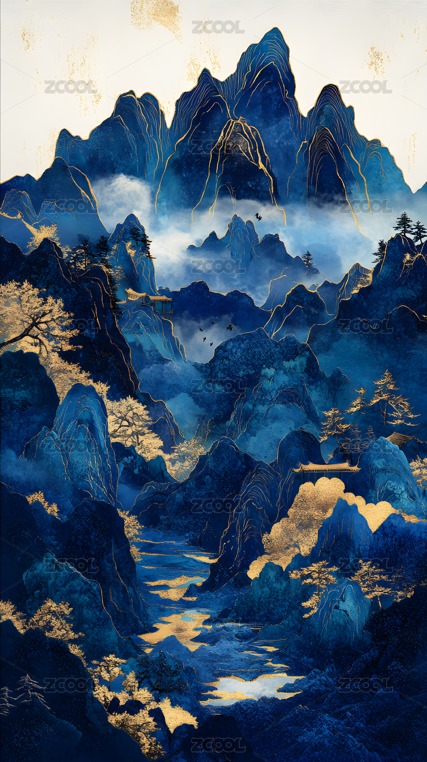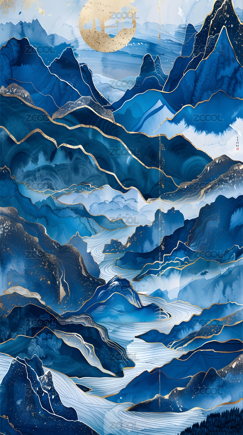 蓝色,山峰,金沙,肌理,元素,装饰画,背景墙,山脉,峰顶