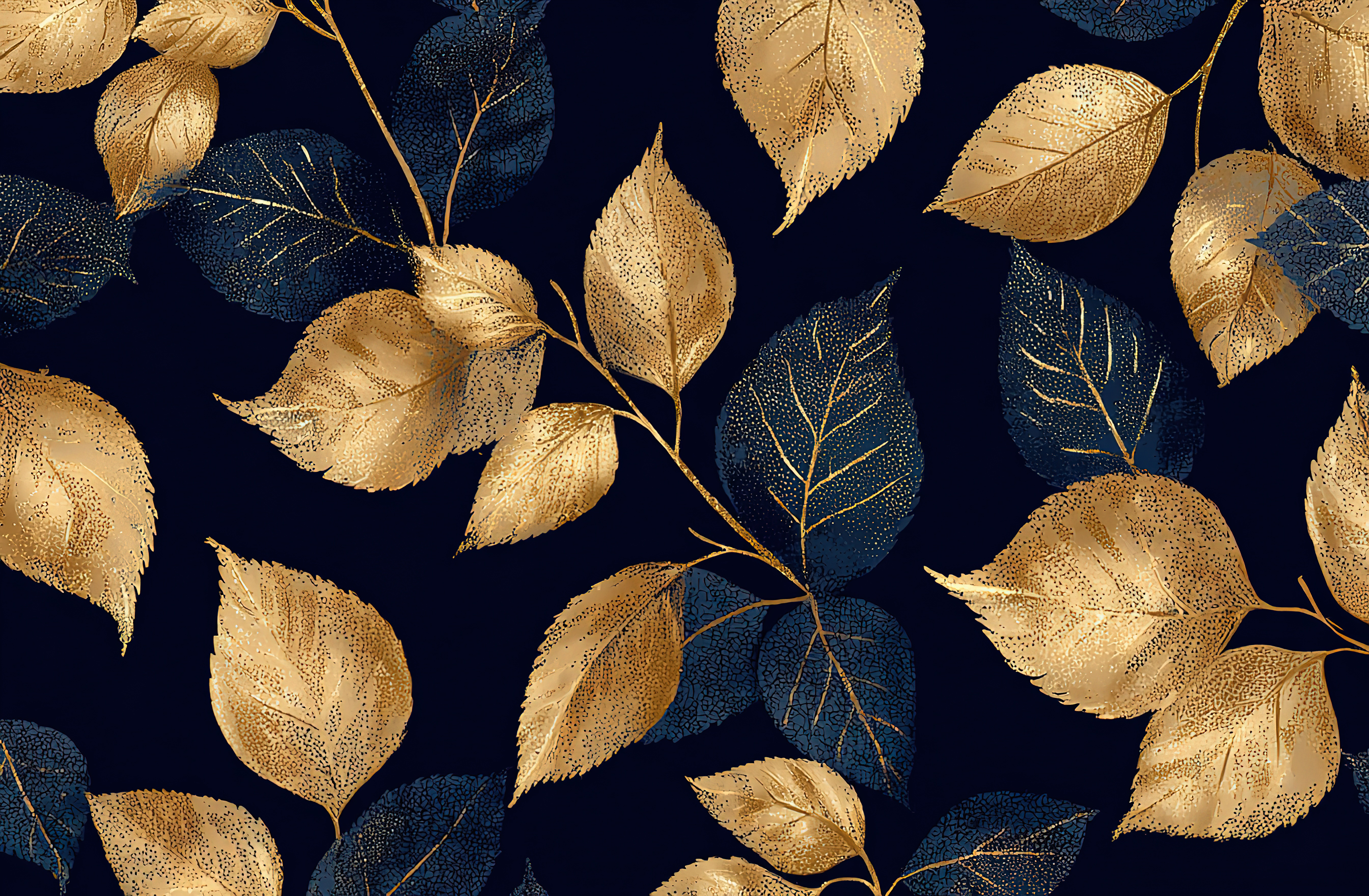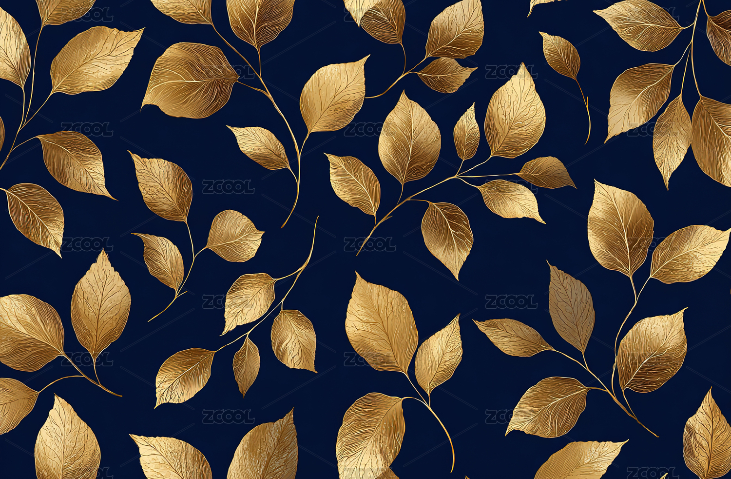 矢量植物底纹背景金边金箔茶树叶绿叶装饰画