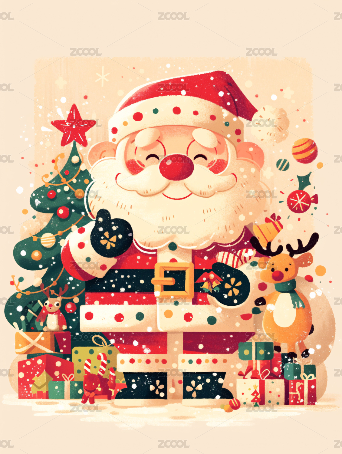 卡通圣诞风格圣诞老人T恤装饰图案插画