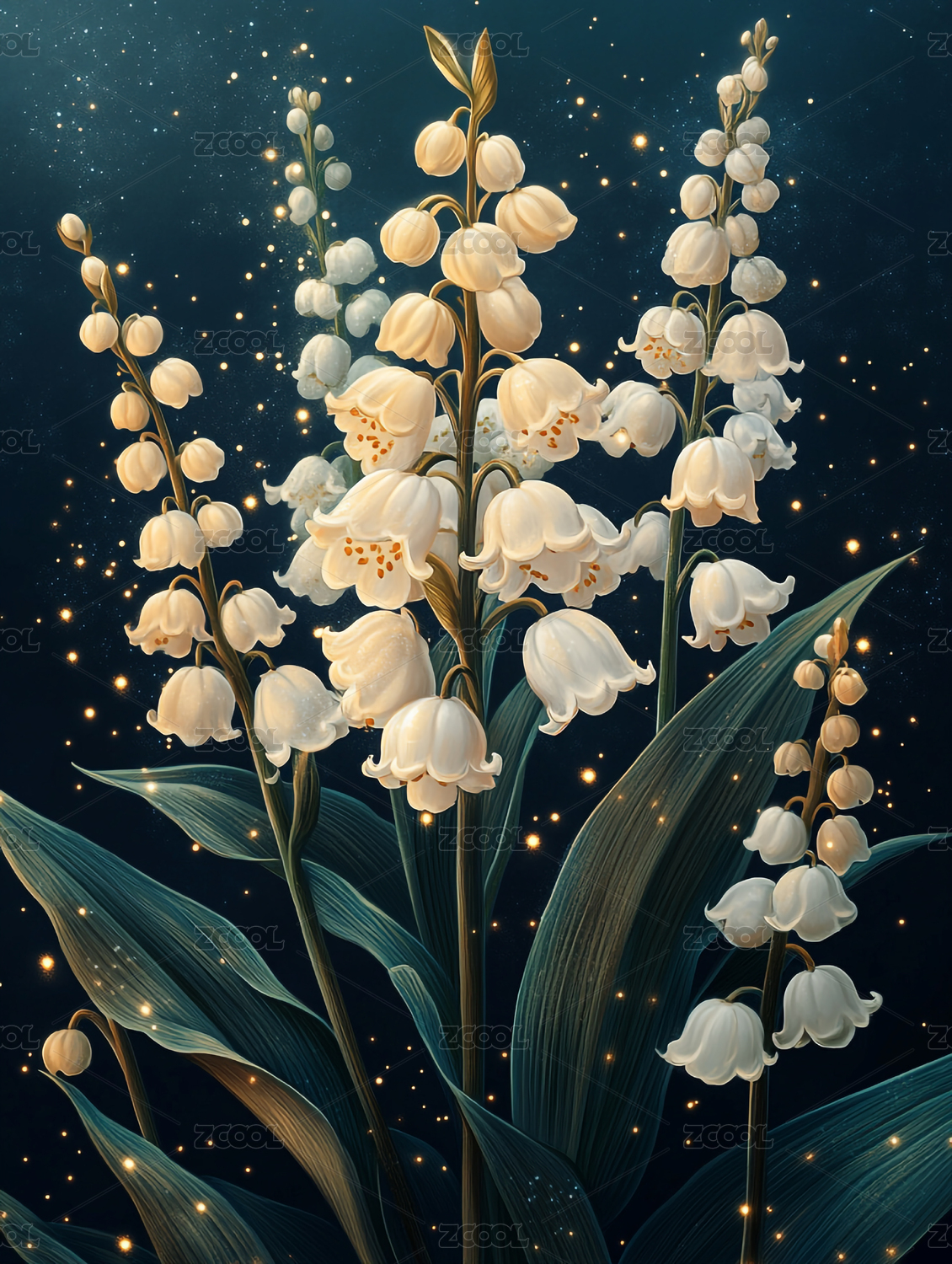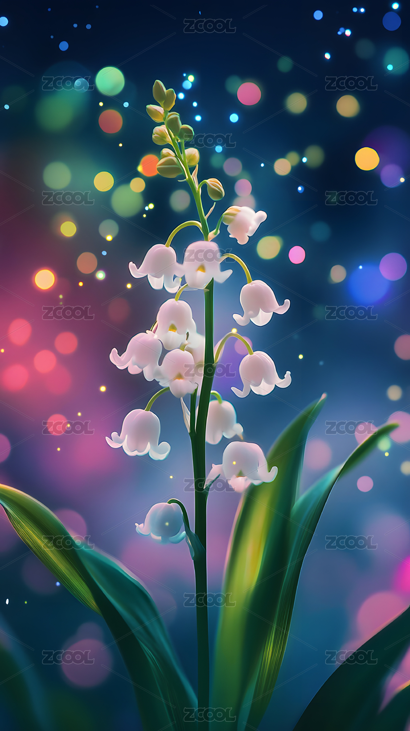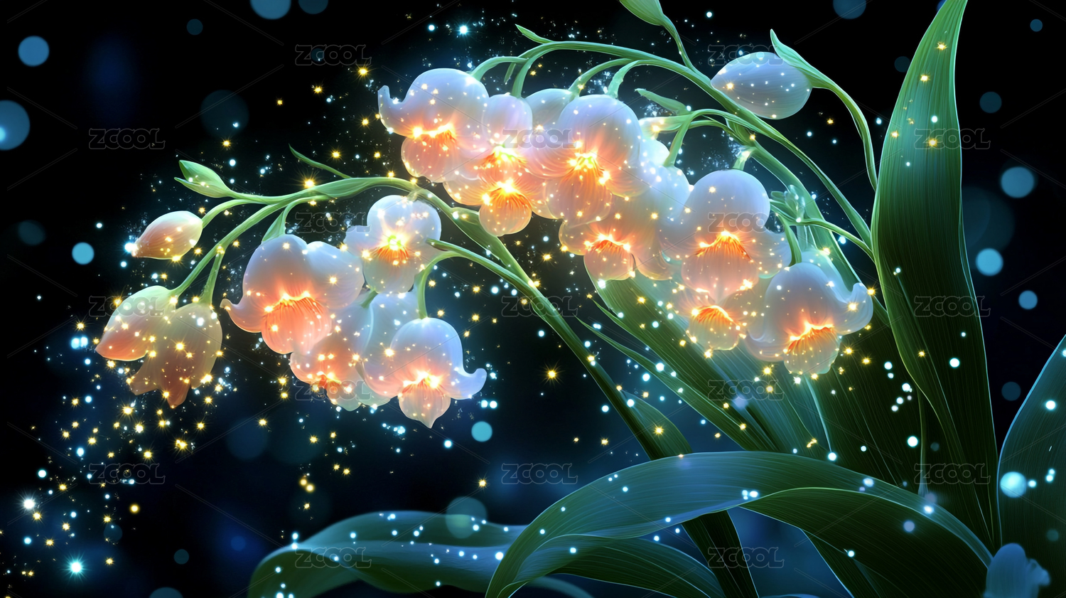 铃兰花,花卉,植物,草本,盛开,花朵,绽放,花心,花蕊,发光
