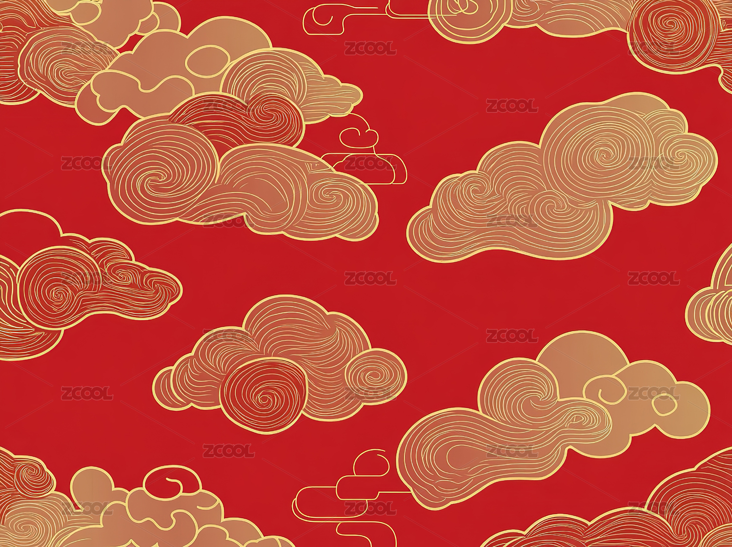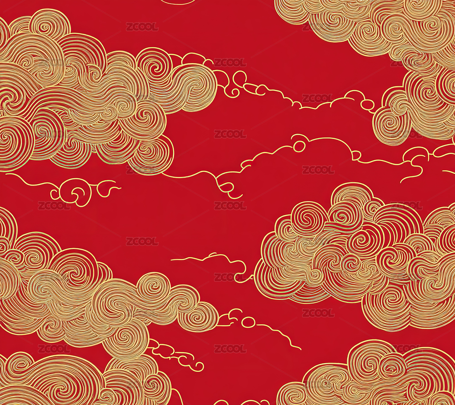 红色,黄,喜庆,节日,线条,云纹,祥云,云,抽象,中国的