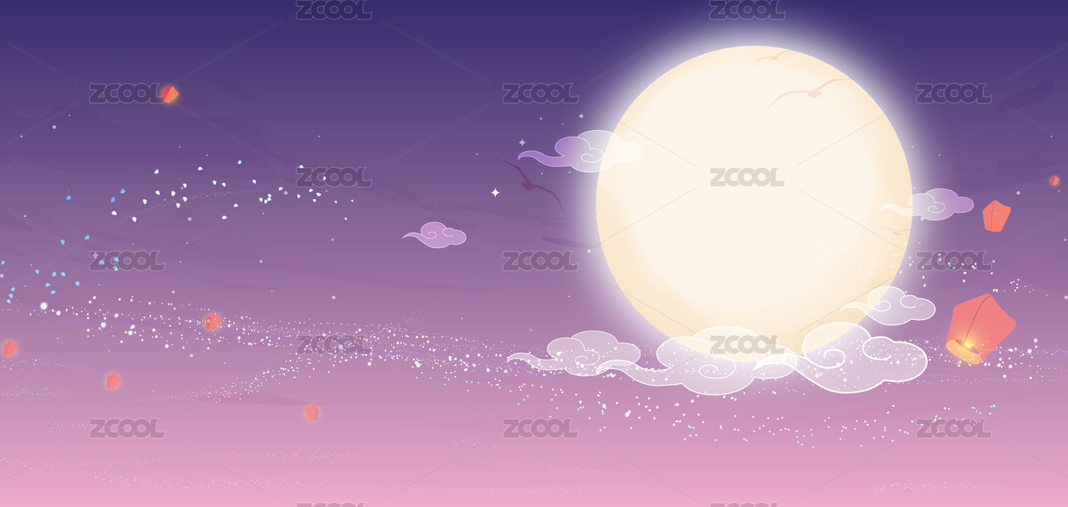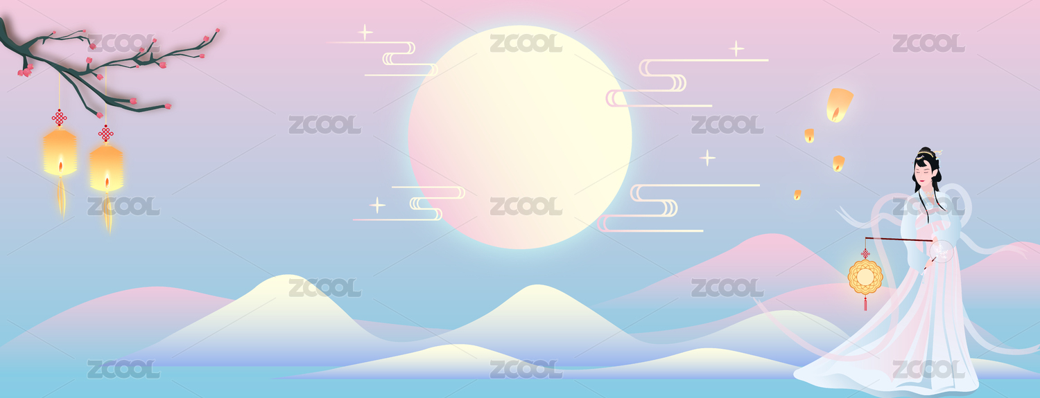 中秋节里赏月亮看花灯传统节日矢量插画背景