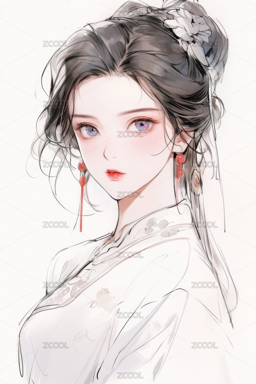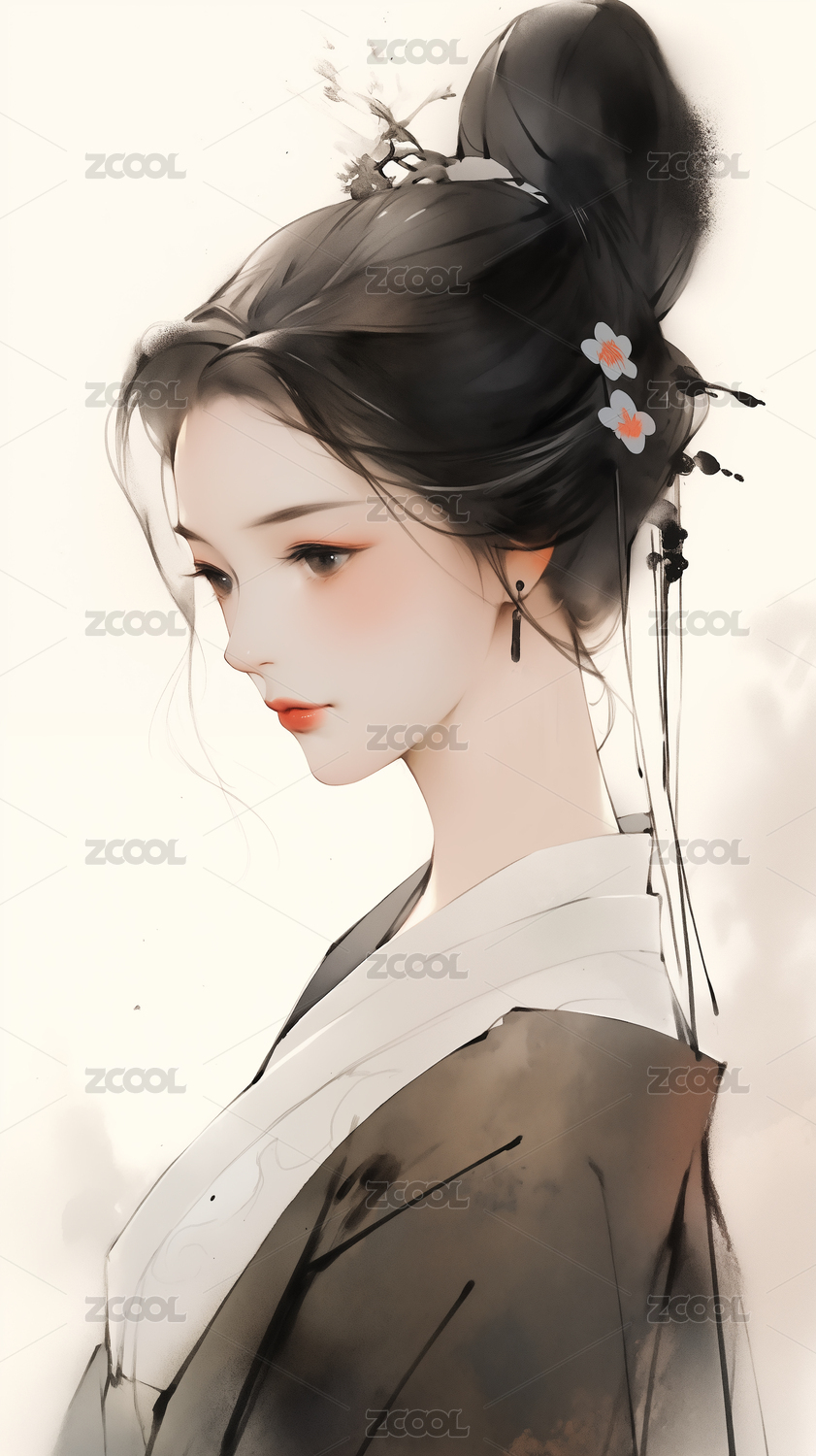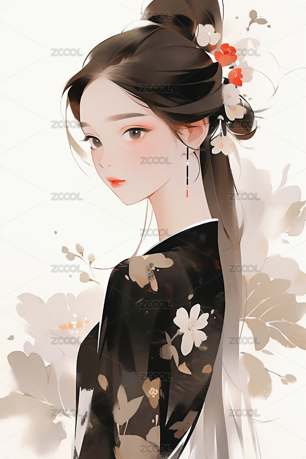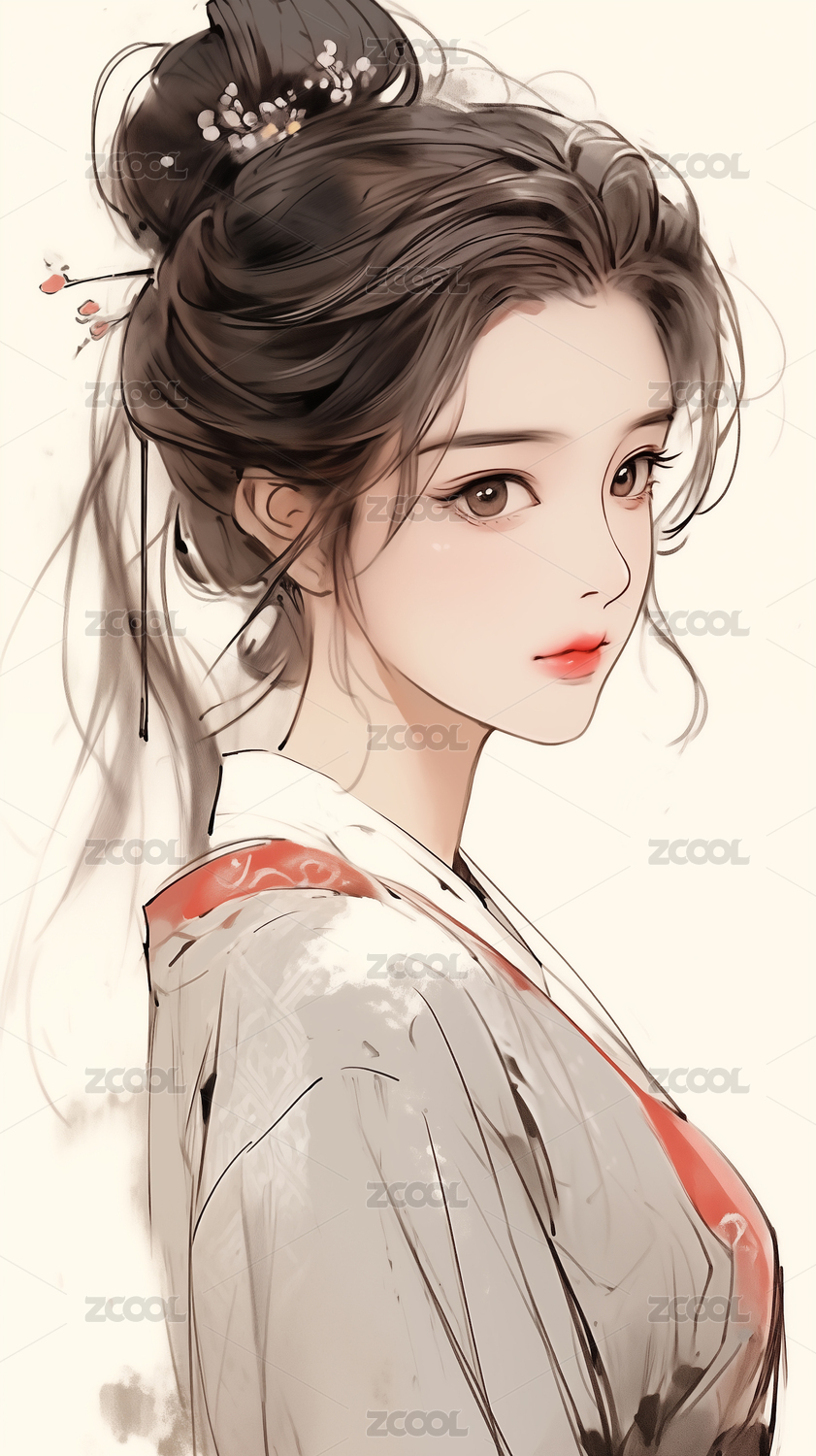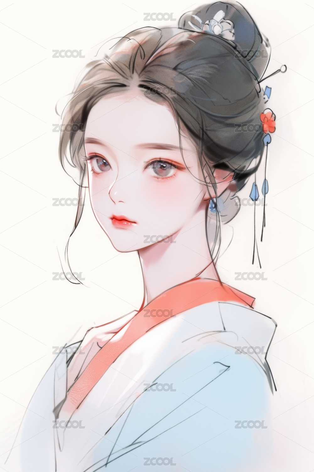 美丽,古装,汉服,女孩,美女,插画,复古,少女,公主,风格