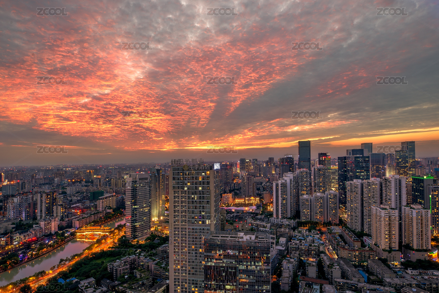 火烧云晚霞中国四川成都九眼桥城市夜景
