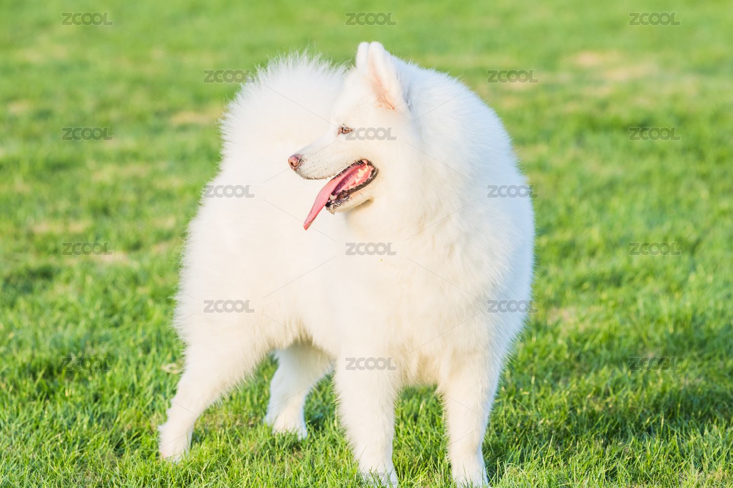 公园草地上白色萌犬萨摩耶