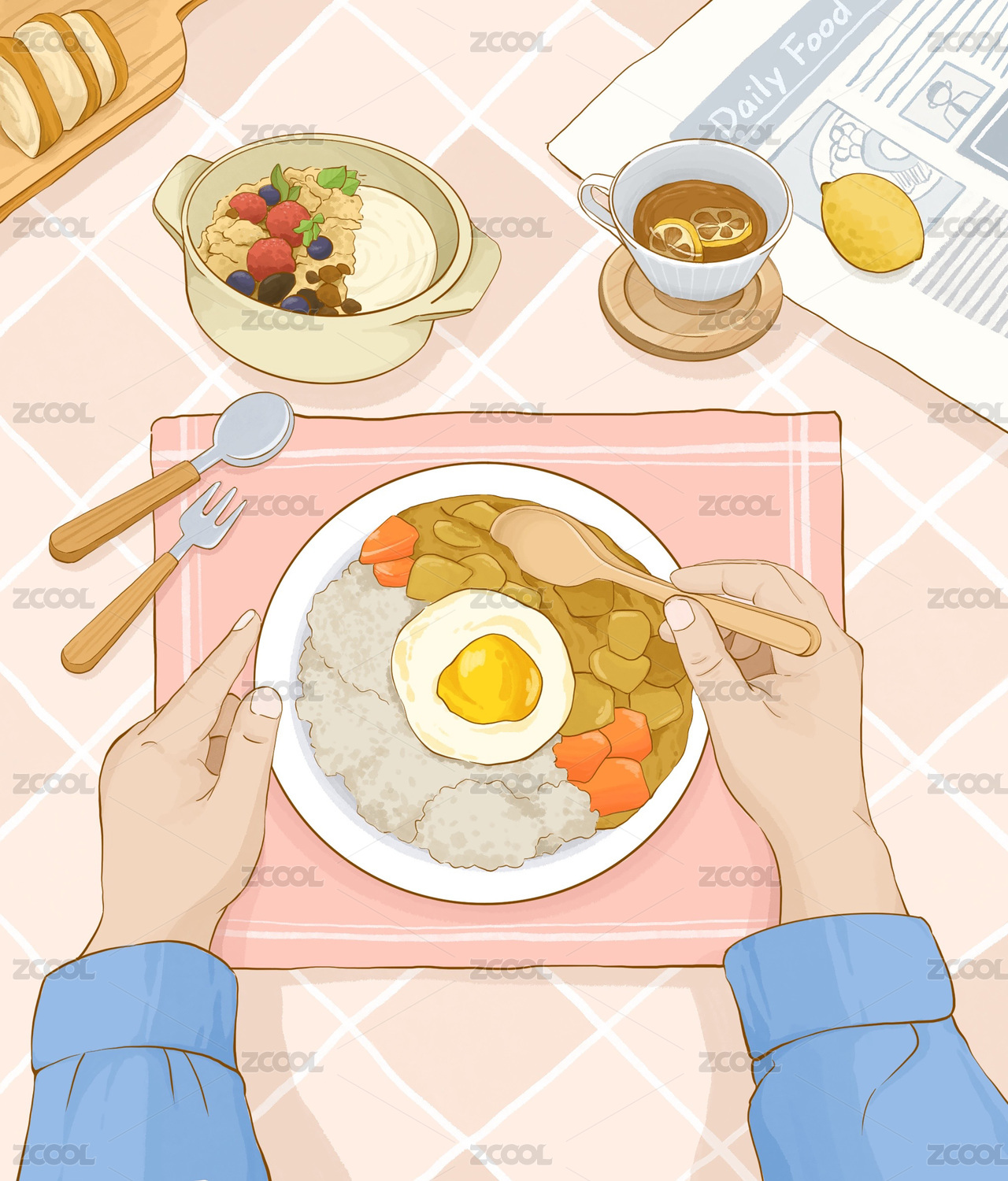 健康午餐美味小吃节日文化早餐晚餐美食插画