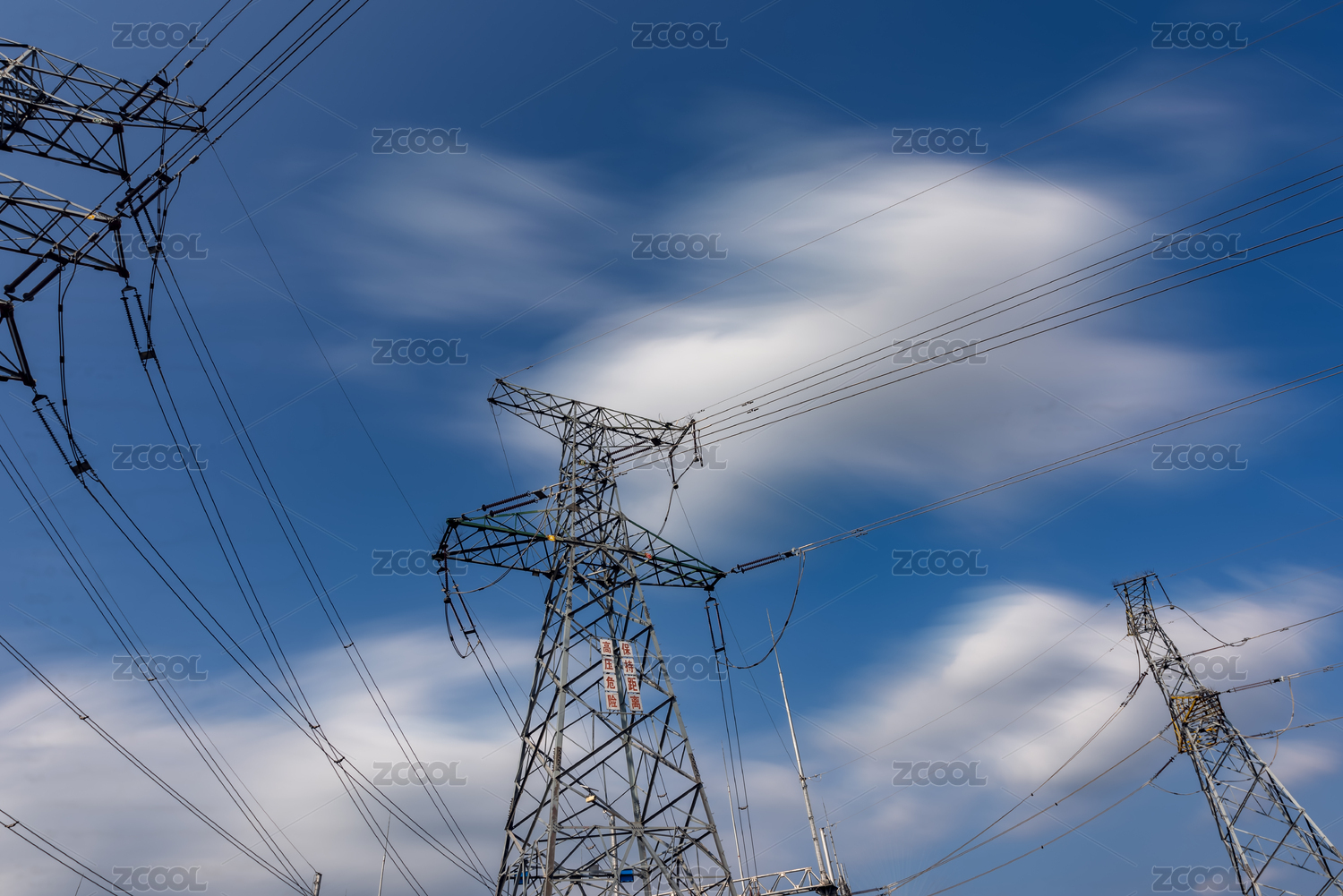 电力线,蓝天白云,建筑,输电线缆,晴天,乡村,输电塔