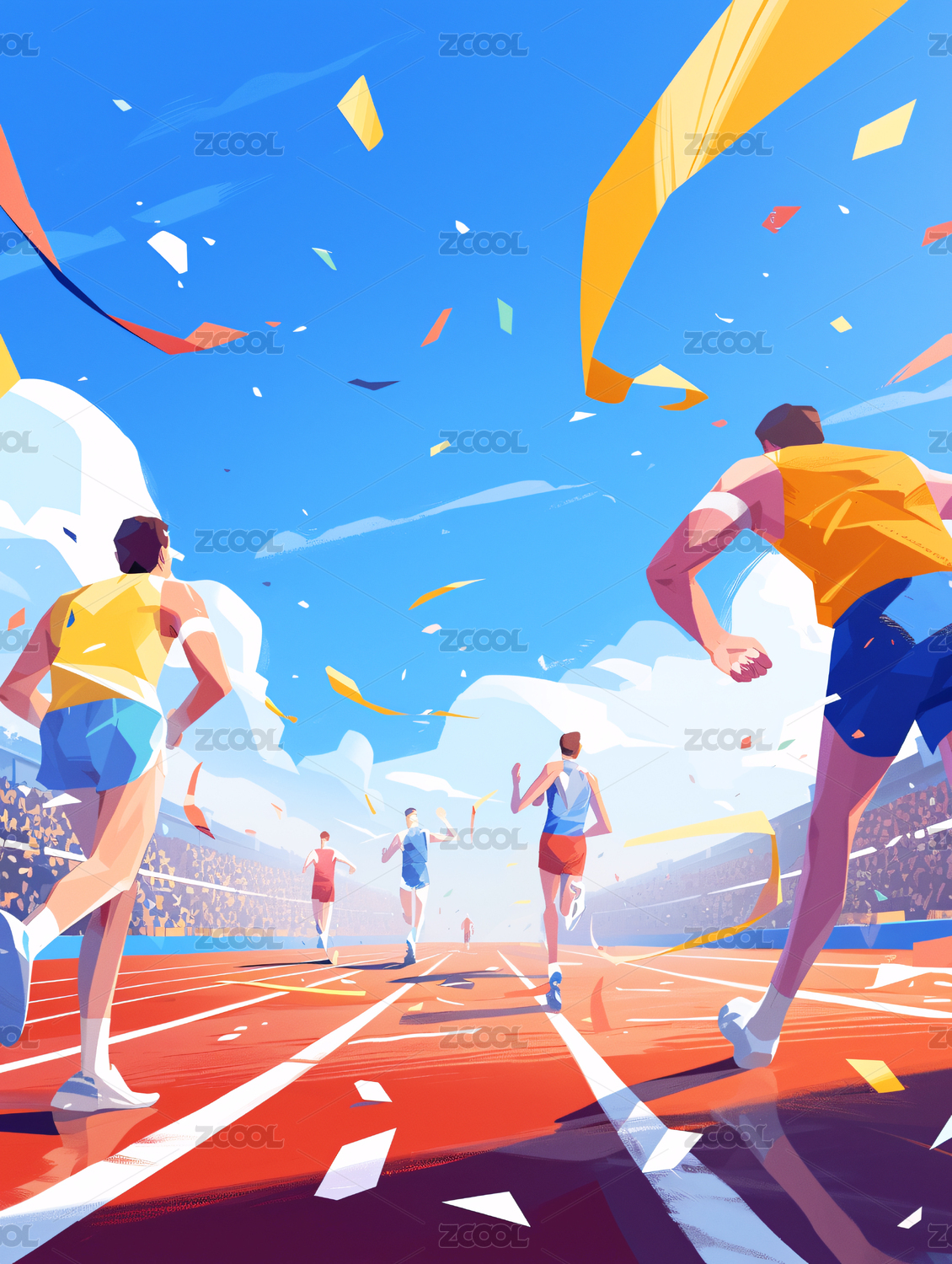 运动员在赛道操场上奔跑插画