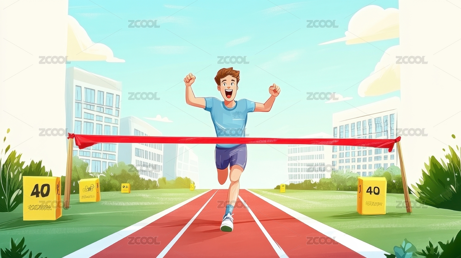 一个小男孩在跑道上奔跑冲刺插画