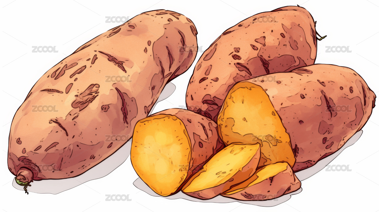 新鲜,土豆,洋芋,插画,插图,切开的,画
