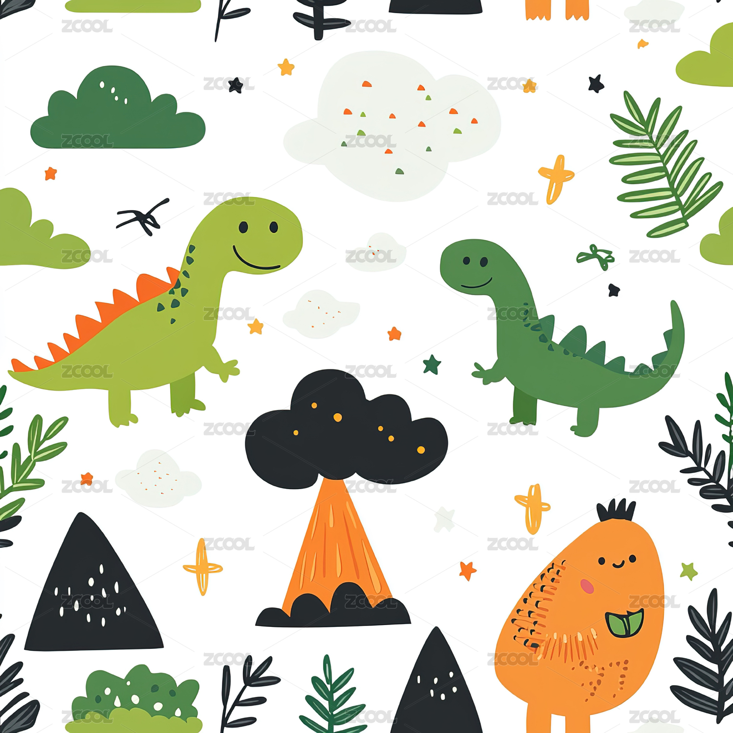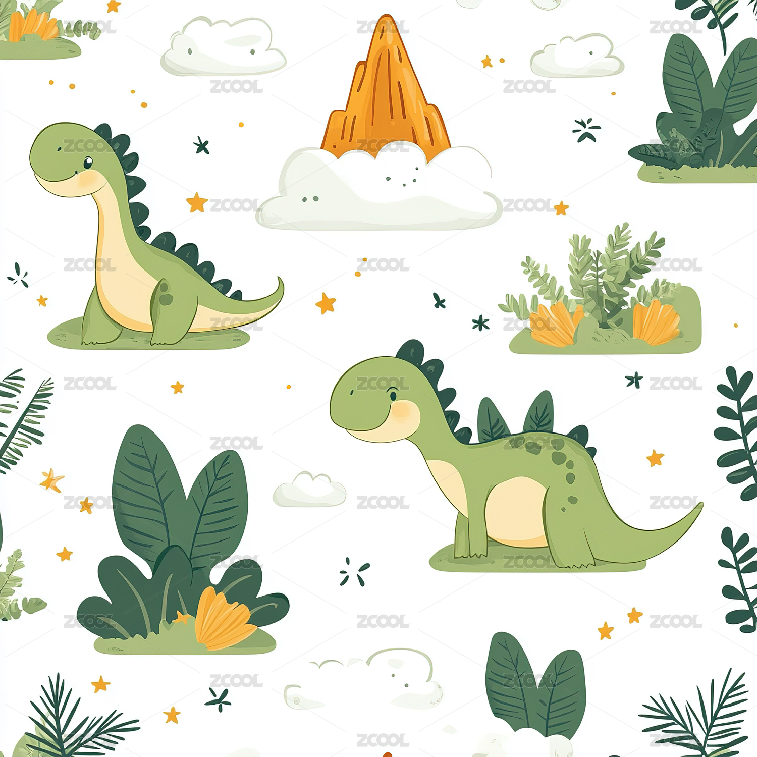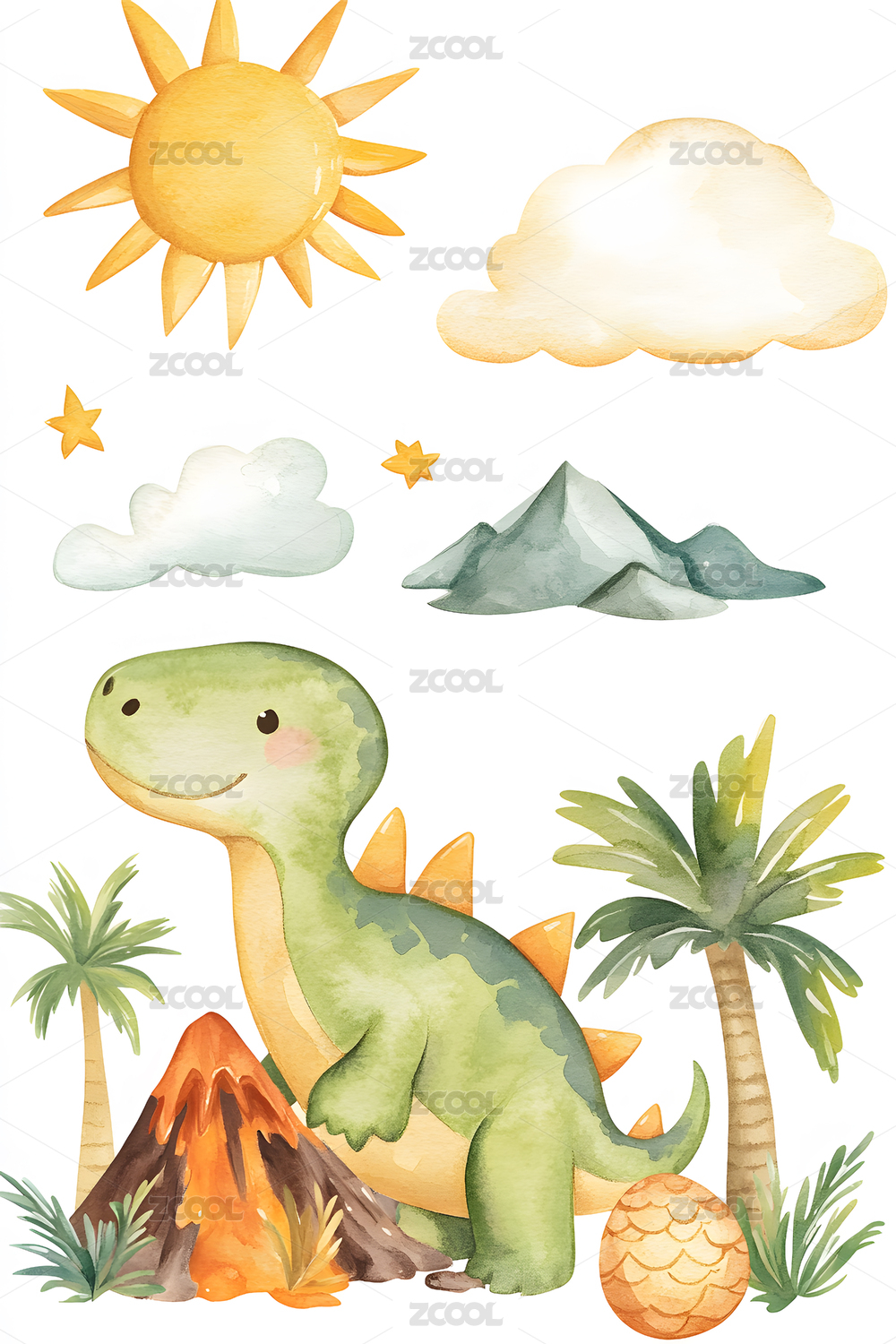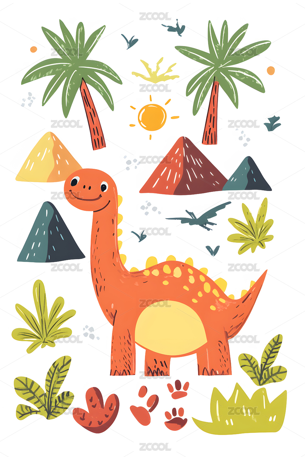 数码水彩幼儿风格恐龙图案装饰抽象图形海报