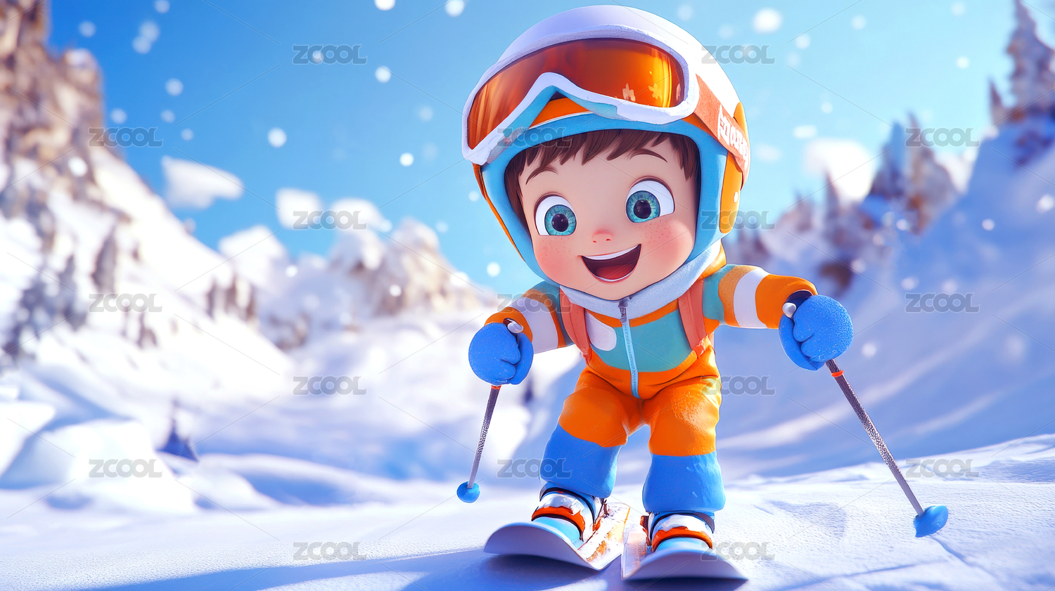 滑雪3D卡通人物插画